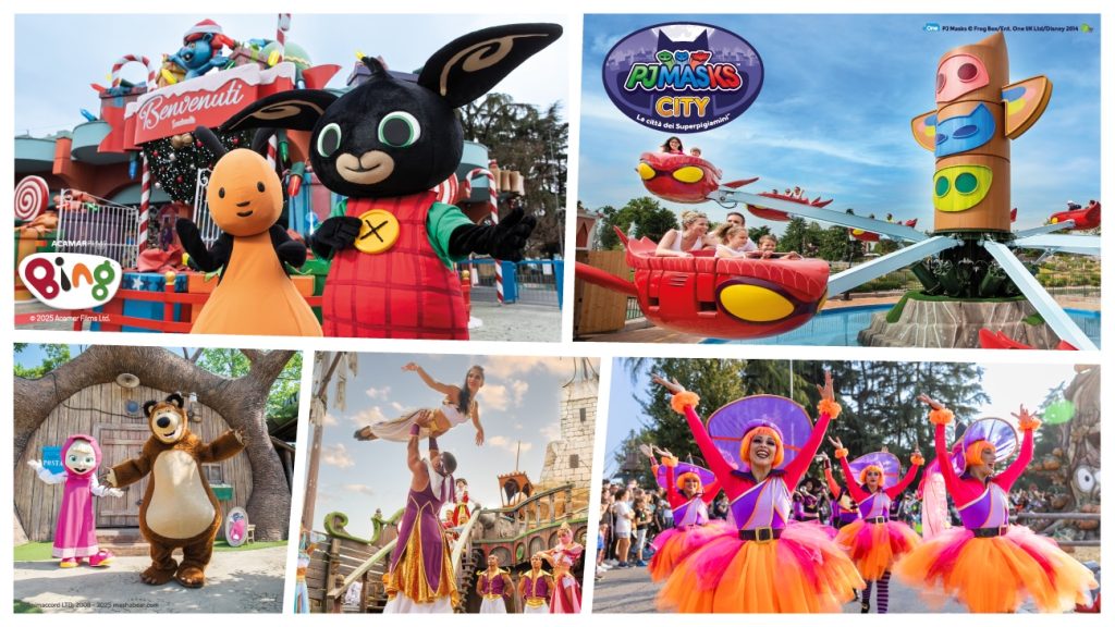 Ma la magia non finisce qui: i più piccoli possono incontrare dal vivo i personaggi preferiti dei cartoni come Bluey e Bingo, i Superpigiamini nella PJ Masks City, scoprire la Foresta di Masha e Orso, assistere al mini-live show con Bing e Flop e fare un giro a bordo del Trenino Thomas. E ancora, originali spettacoli, animazioni, esperienze esclusive, la Fattoria e la storica Minitalia.
