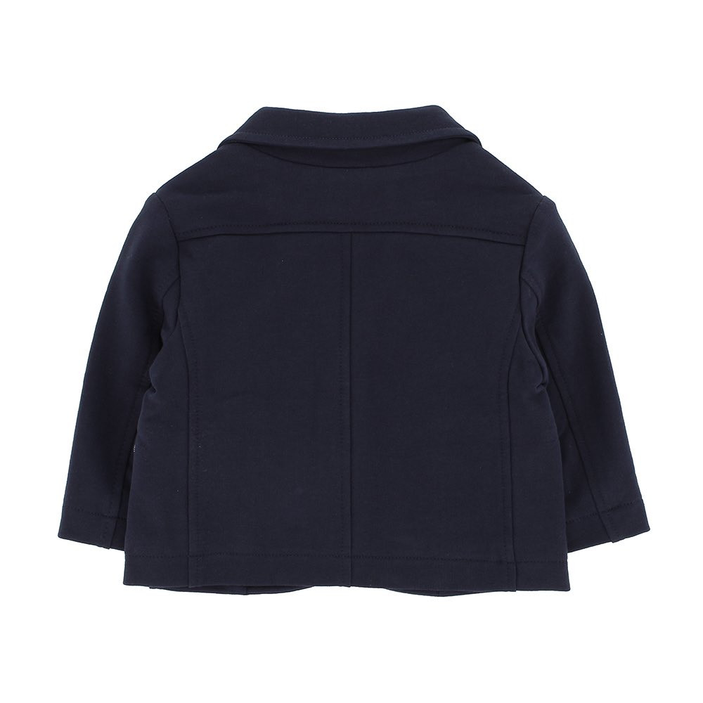 Sweatshirtjacke, mit Revers, mit langen Ärmeln. Frontverschluss mit 2 Tasten. Fronttaschen mit Patt e. Innenfutter aus Jersey.
