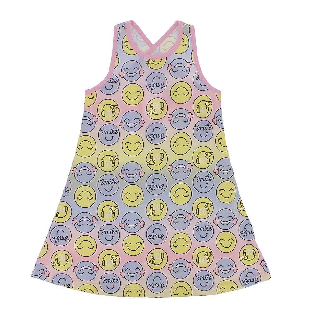 Trikot-Vertuschung. Gekreuzte Gurte auf der Rückseite und kontrastierende Profile. Allover-Druck mi t Smileys.