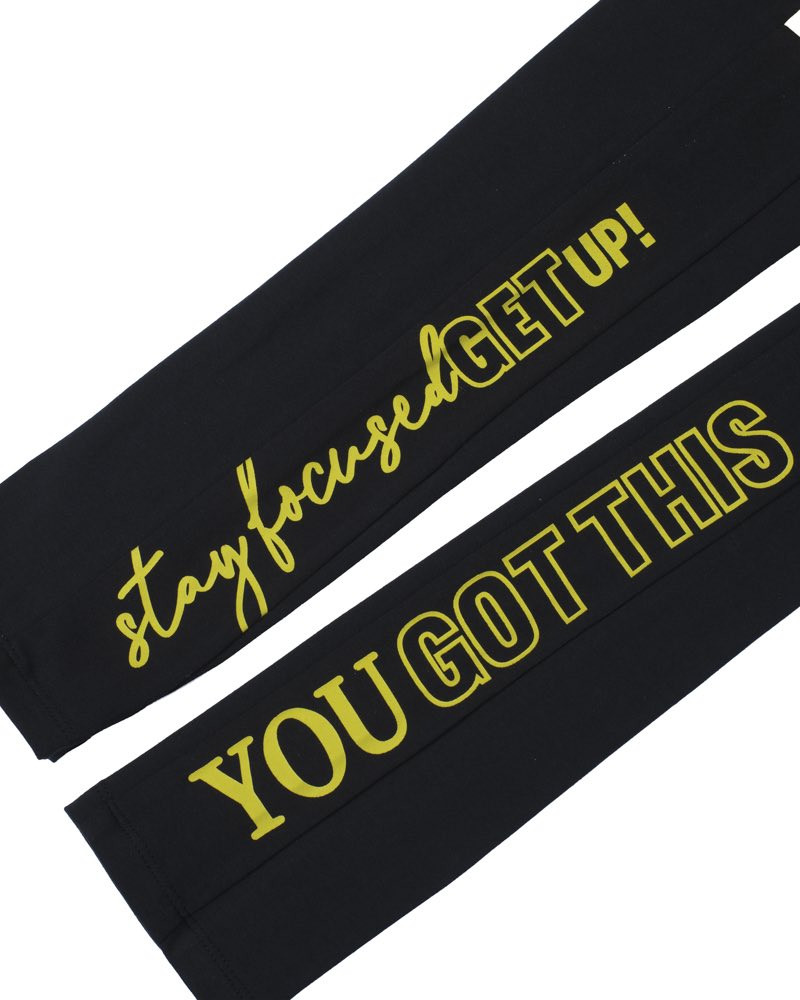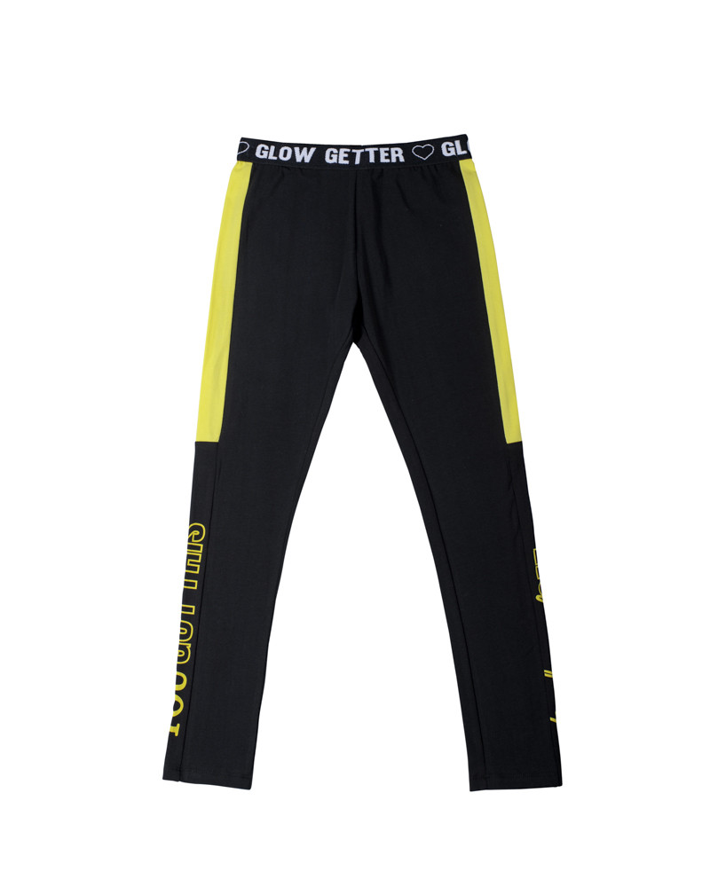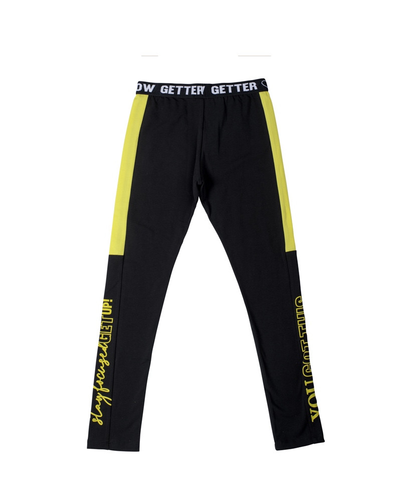 Jersey Leggings mit kontrastierenden Seitenbändern. Taille mit Gummizug. Seitendrucke.