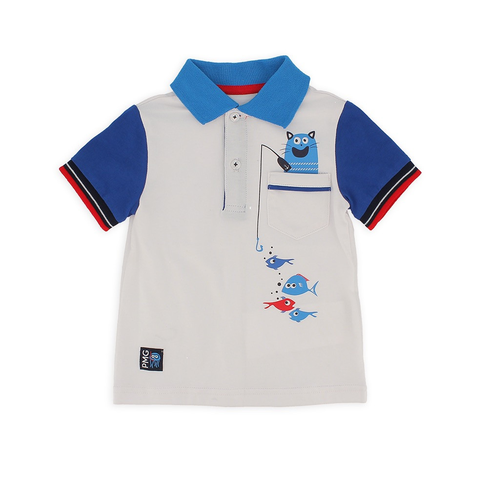 Jersey Poloshirt mit kontrastierenden kurzen Ärmeln. Frontverschluss mit Knöpfen. Fronttasche mit A ufdruck.