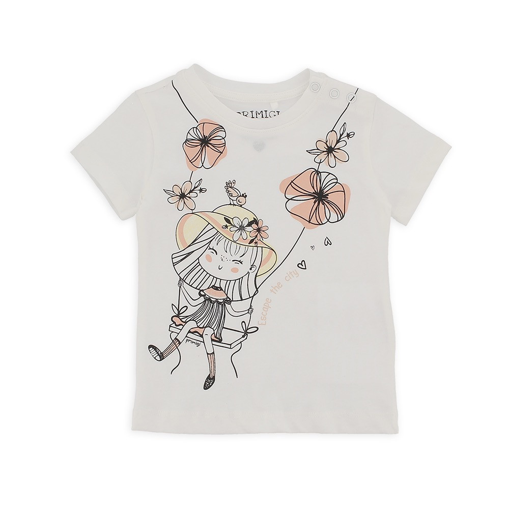 Kurzärmeliges T-Shirt mit Rundhalsausschnitt, aus Jersey. Druckknopfverschluss an der Schulter. Fro ntdruck.