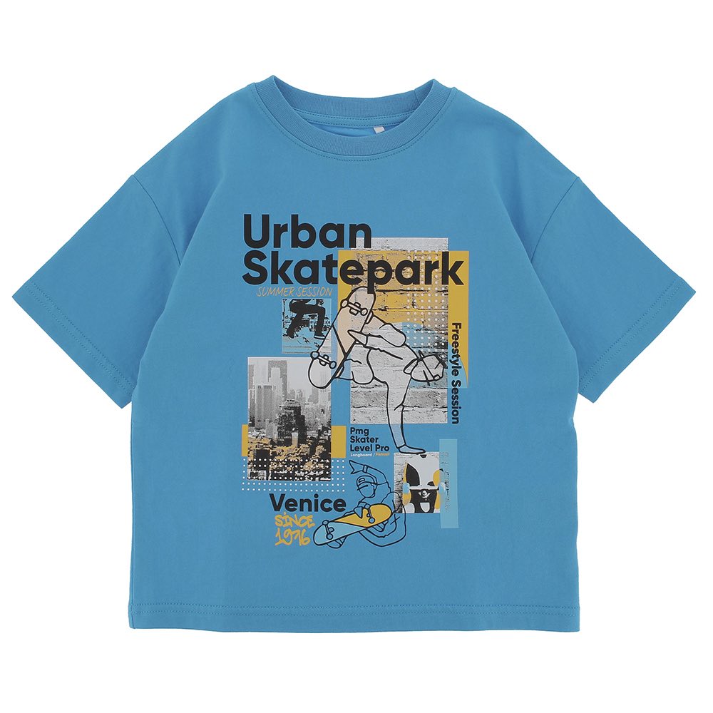 Übergroßes Jersey-T-Shirt, Rundhalsausschnitt, kurzärmelig. Frontdruck.
