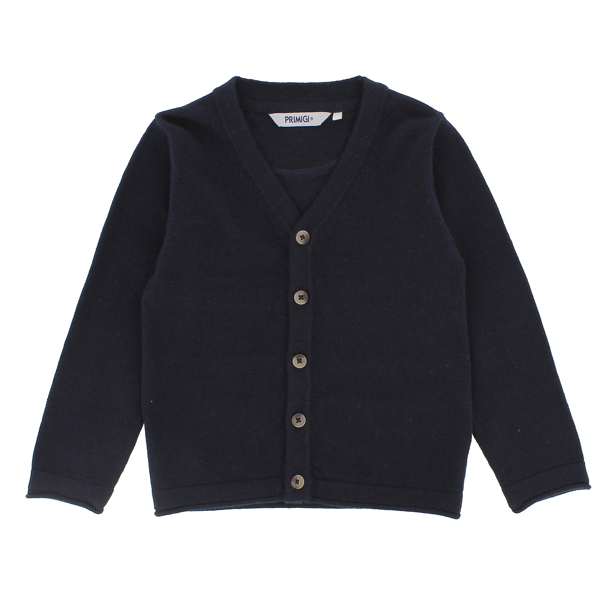 Strickstrickjacke mit V-Ausschnitt und langen Ärmeln. Knopfverschluss auf der Vorderseite.