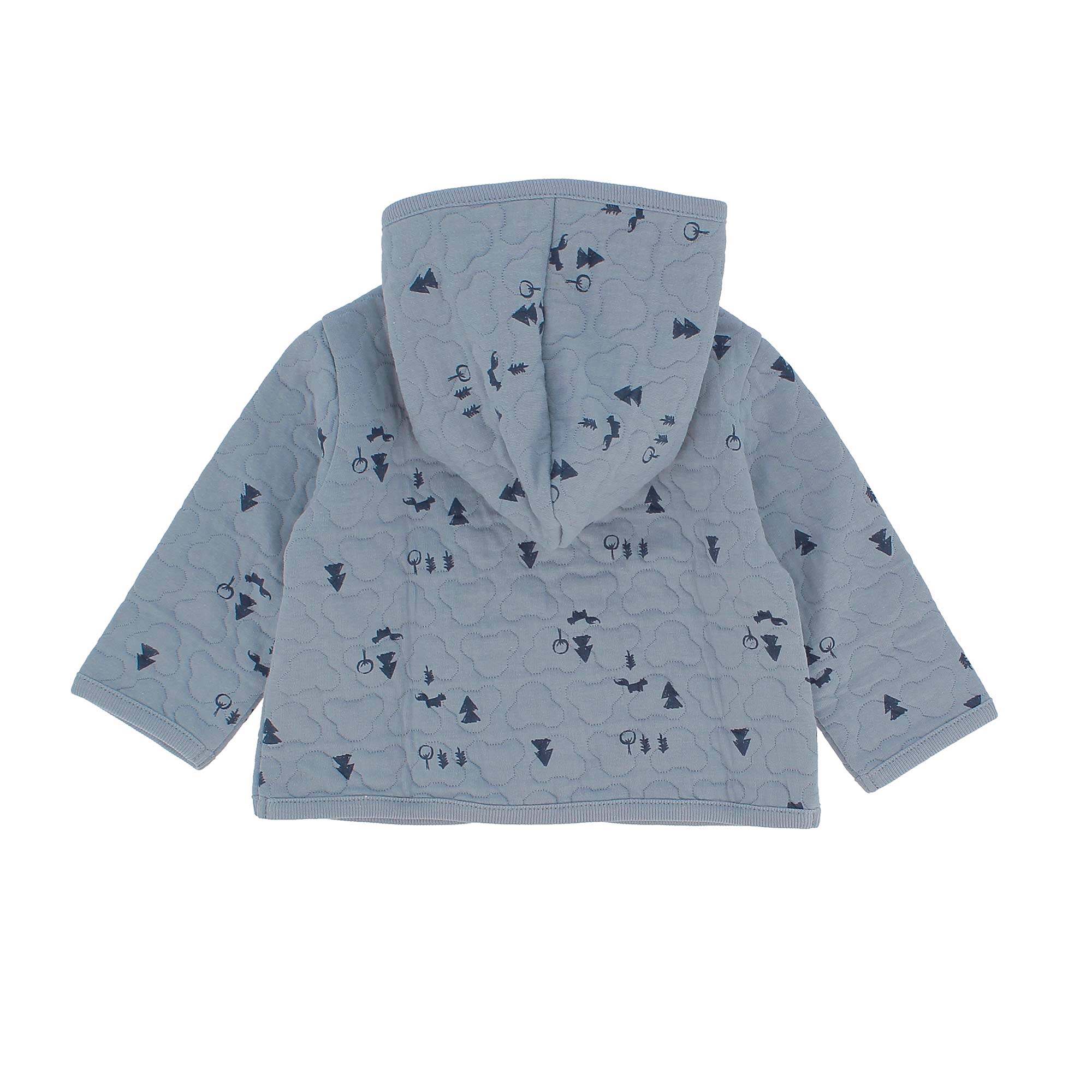 Sweatshirt mit Kapuze und langen Ärmeln. Druckknopfverschluss. Matelassé-Stoff und Alloverdruck. Dieses Kleidungsstück ist umweltfreundlich, da es überwiegend aus recycelten Fasern hergestellt wird.