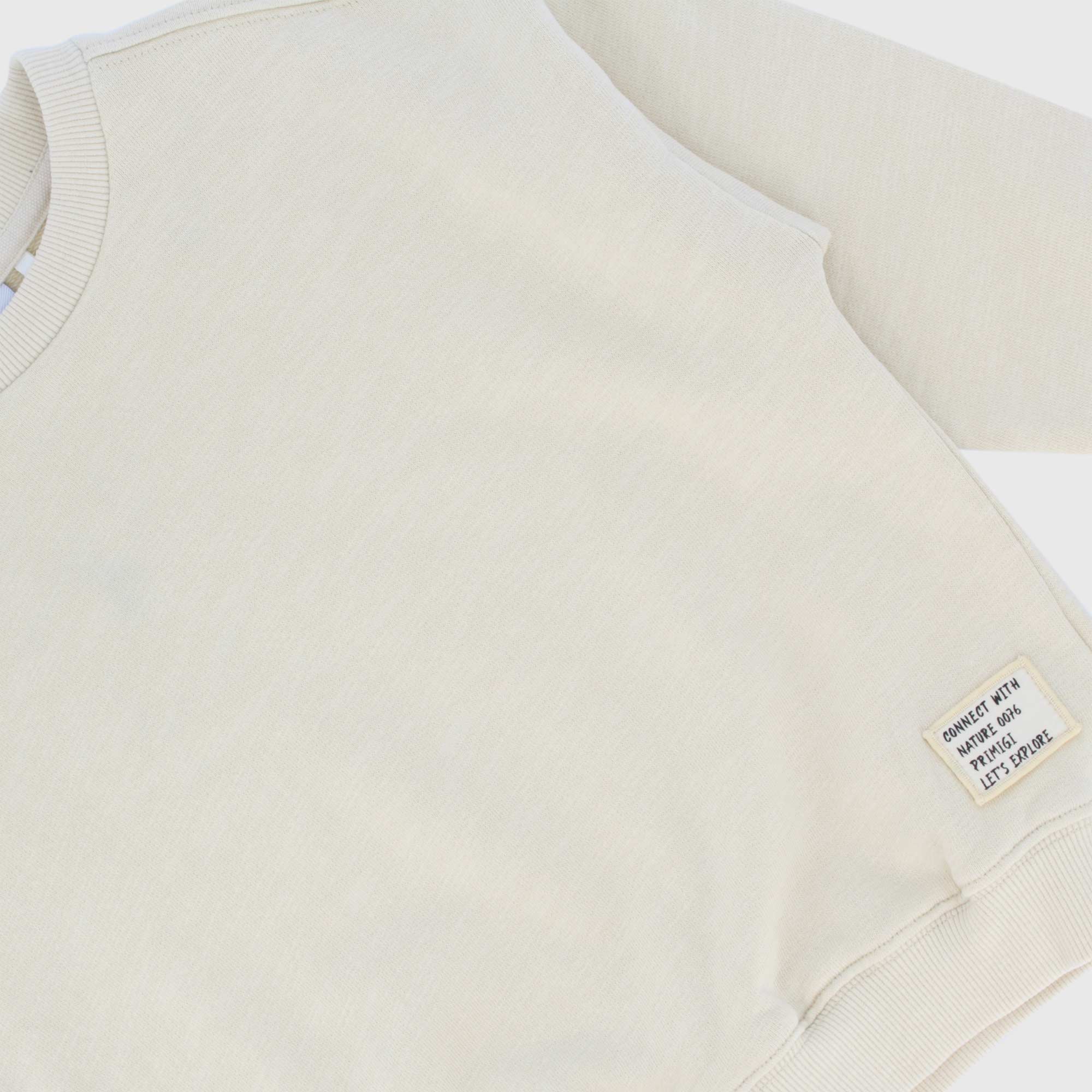Rundhals-Sweatshirt, langärmlig, "gebrauchter" Effekt. Patch auf der Vorderseite ton sur ton.