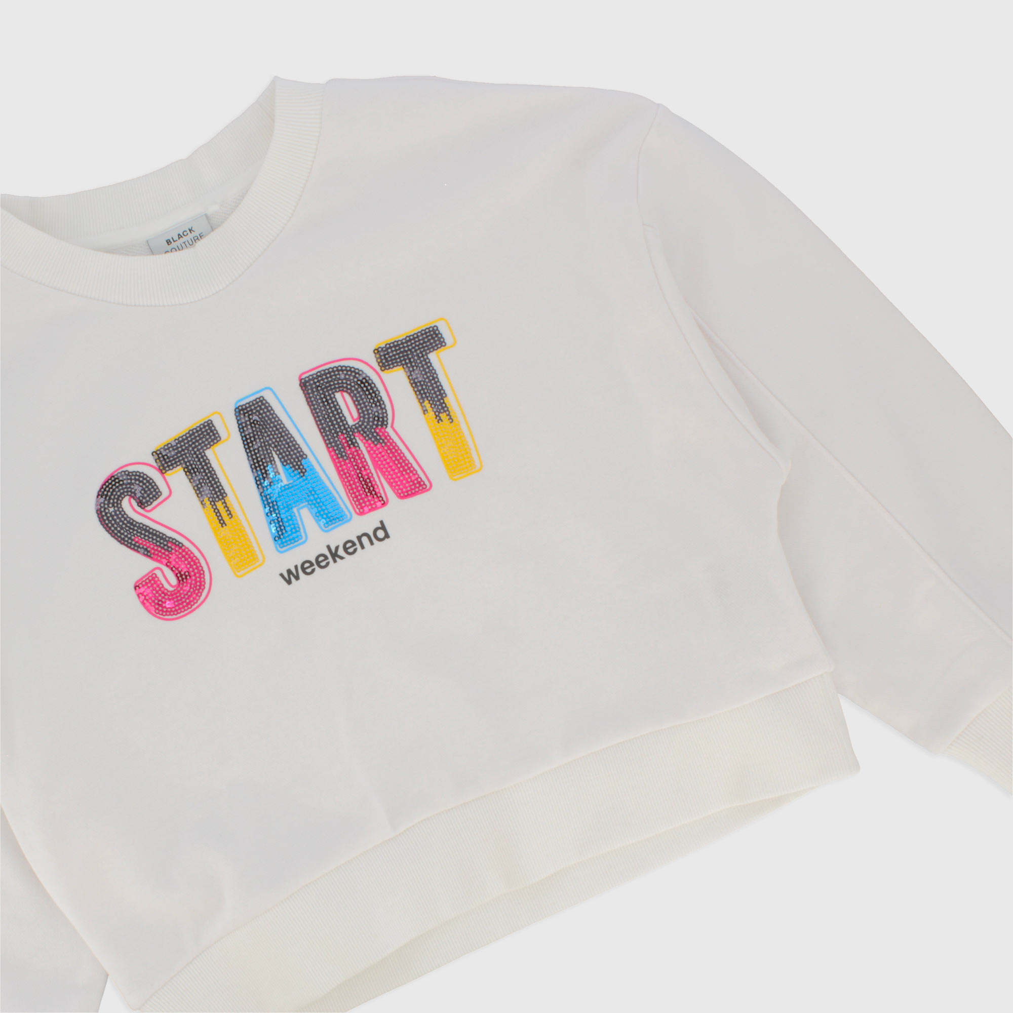 Langärmliges Sweatshirt mit Rundhalsausschnitt. Print mit mehrfarbiger Paillettenschrift.