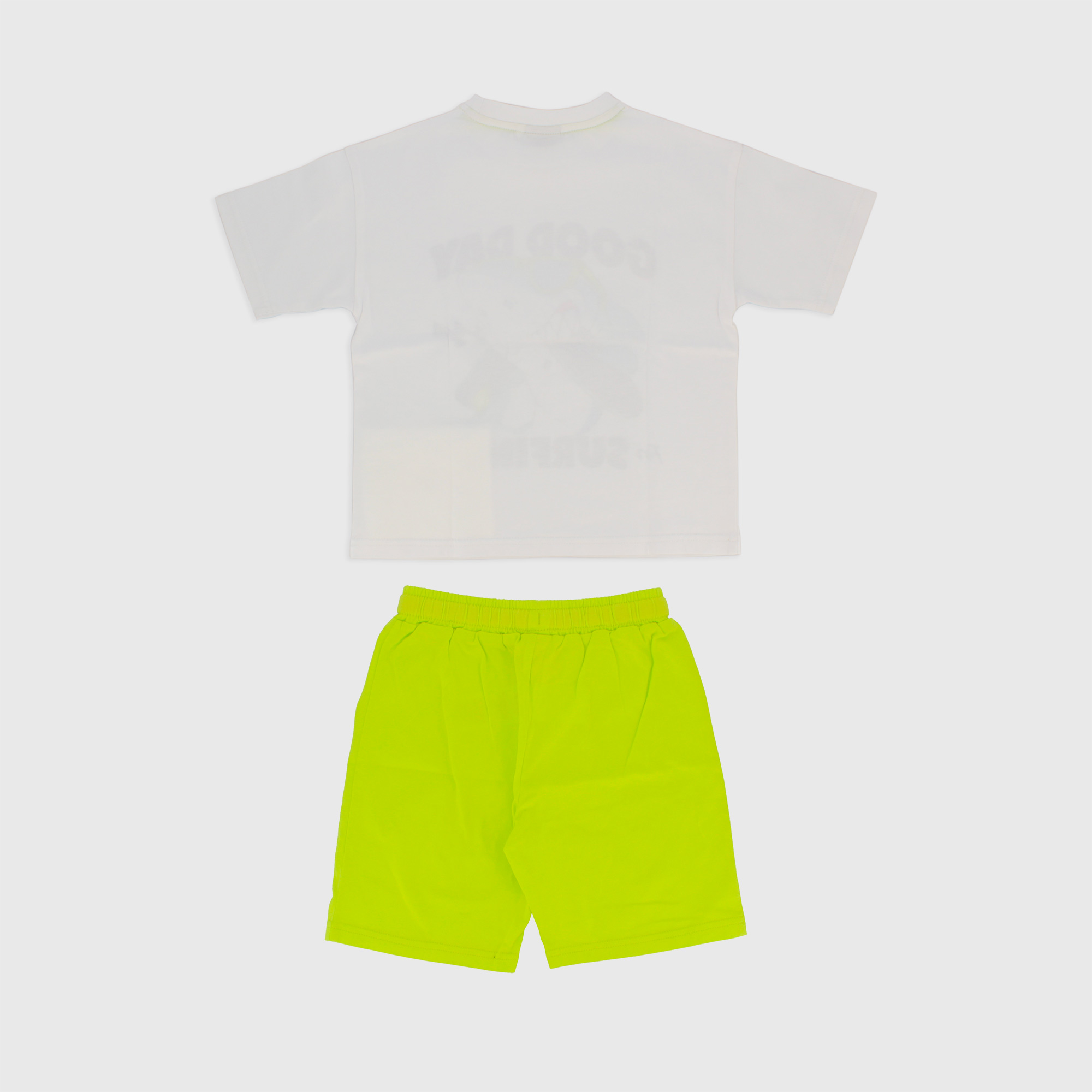 Komplett bestehend aus zwei Teilen. Jersey-Tanktop mit Rundhalsausschnitt. Frontdruck. Jersey-Shorts mit elastischer Taille und vorderen Schnürsenkeln.
