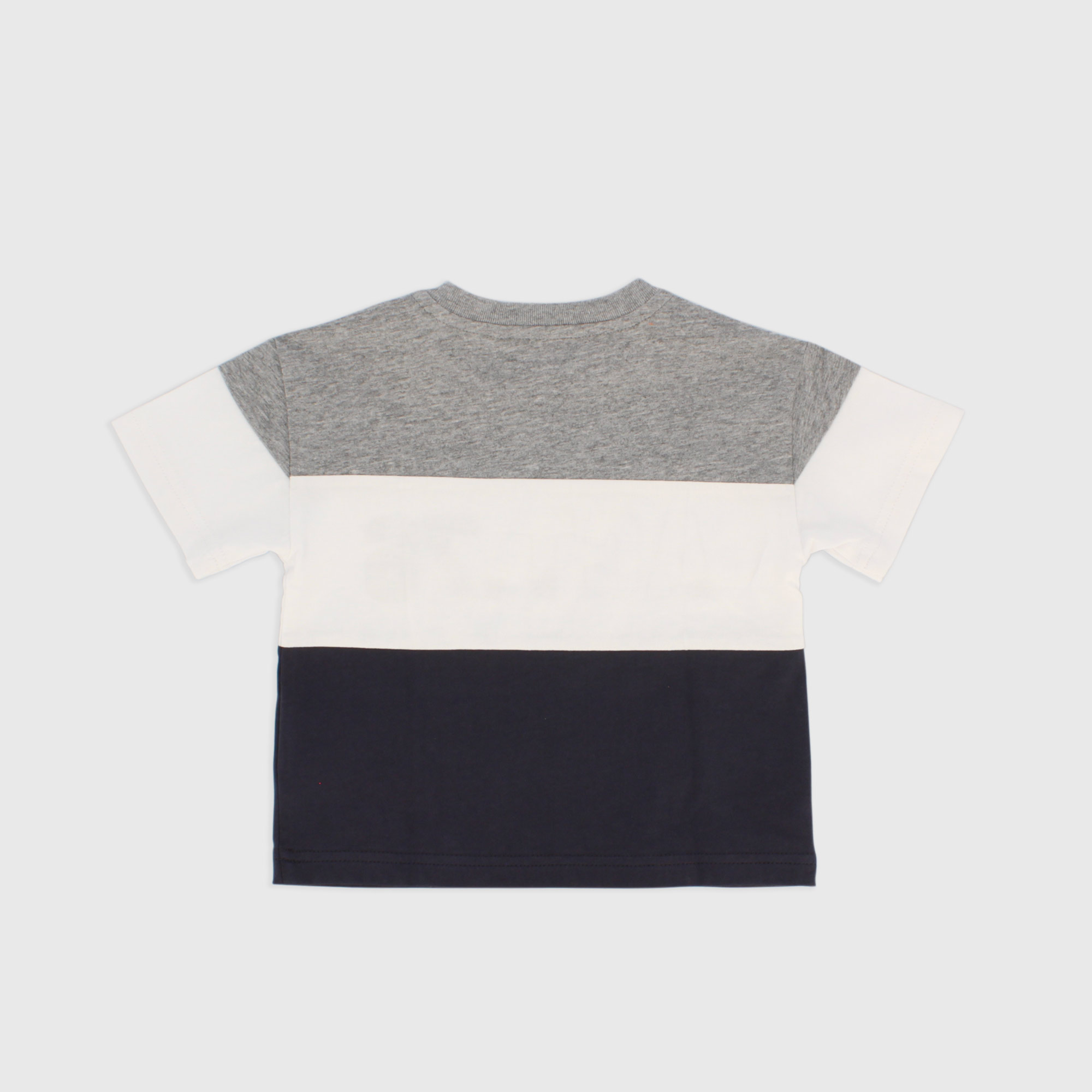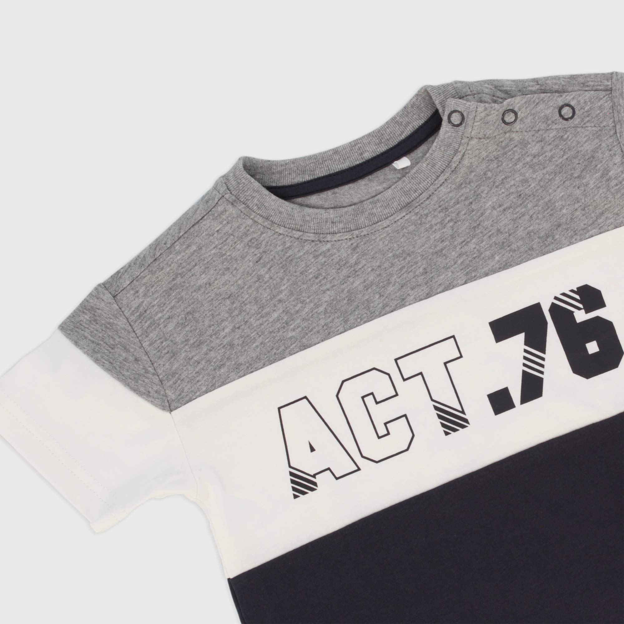 T-shirt aus Jersey, Rundhalsausschnitt, kurze Ärmel. Schnappknopfverschluss an der Schulter. Druck auf der Vorderseite.