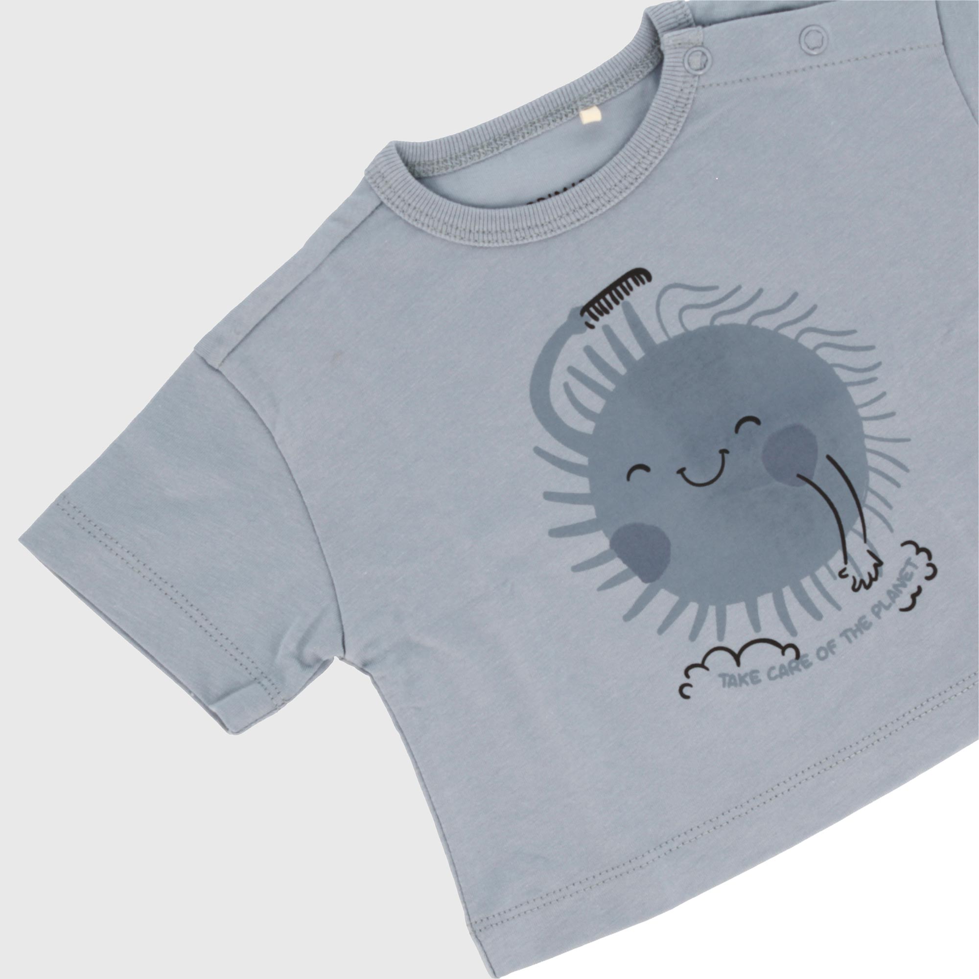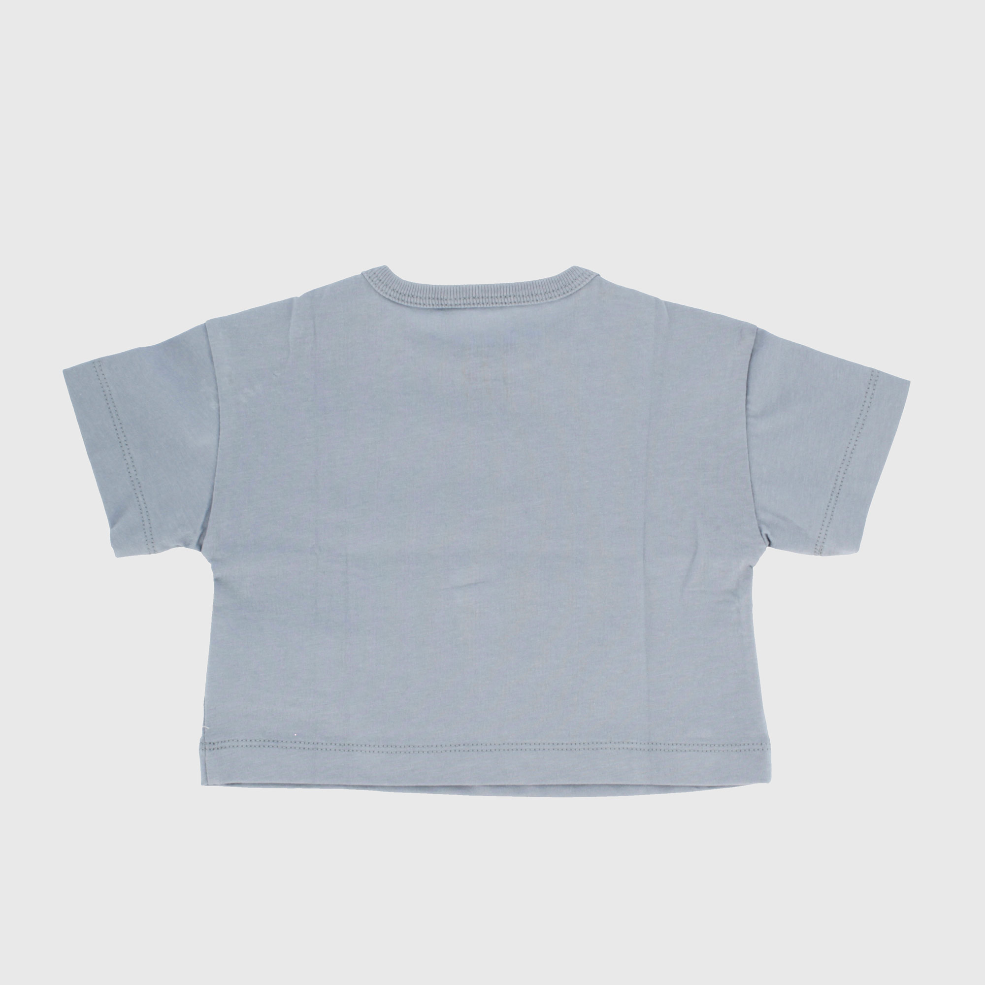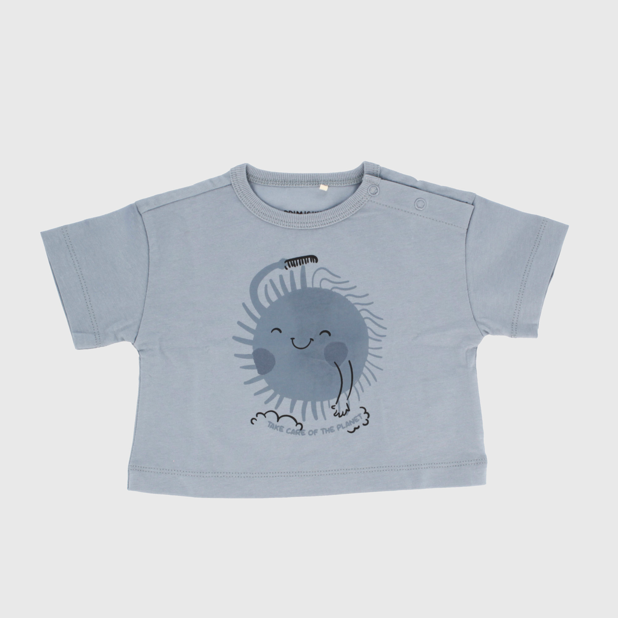 Jersey T-shirt, Rundhalsausschnitt, kurze Ärmel. Schnappknopfverschluss an der Schulter. Druck auf der Vorderseite. Dieses Kleidungsstück ist ökologisch nachhaltig da es aus Bio-Baumwolle hergestellt wird.