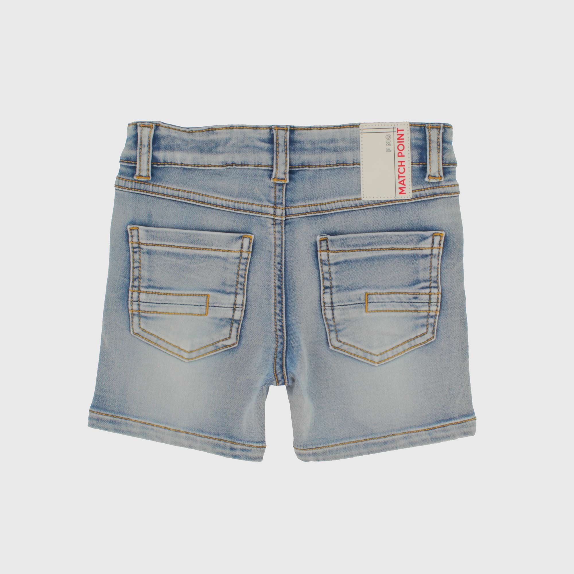 Strickeffekt Jeansshorts mit verstellbarer Taille innen. Knopf und Druckknopf Verschluss. Fünf Taschen.