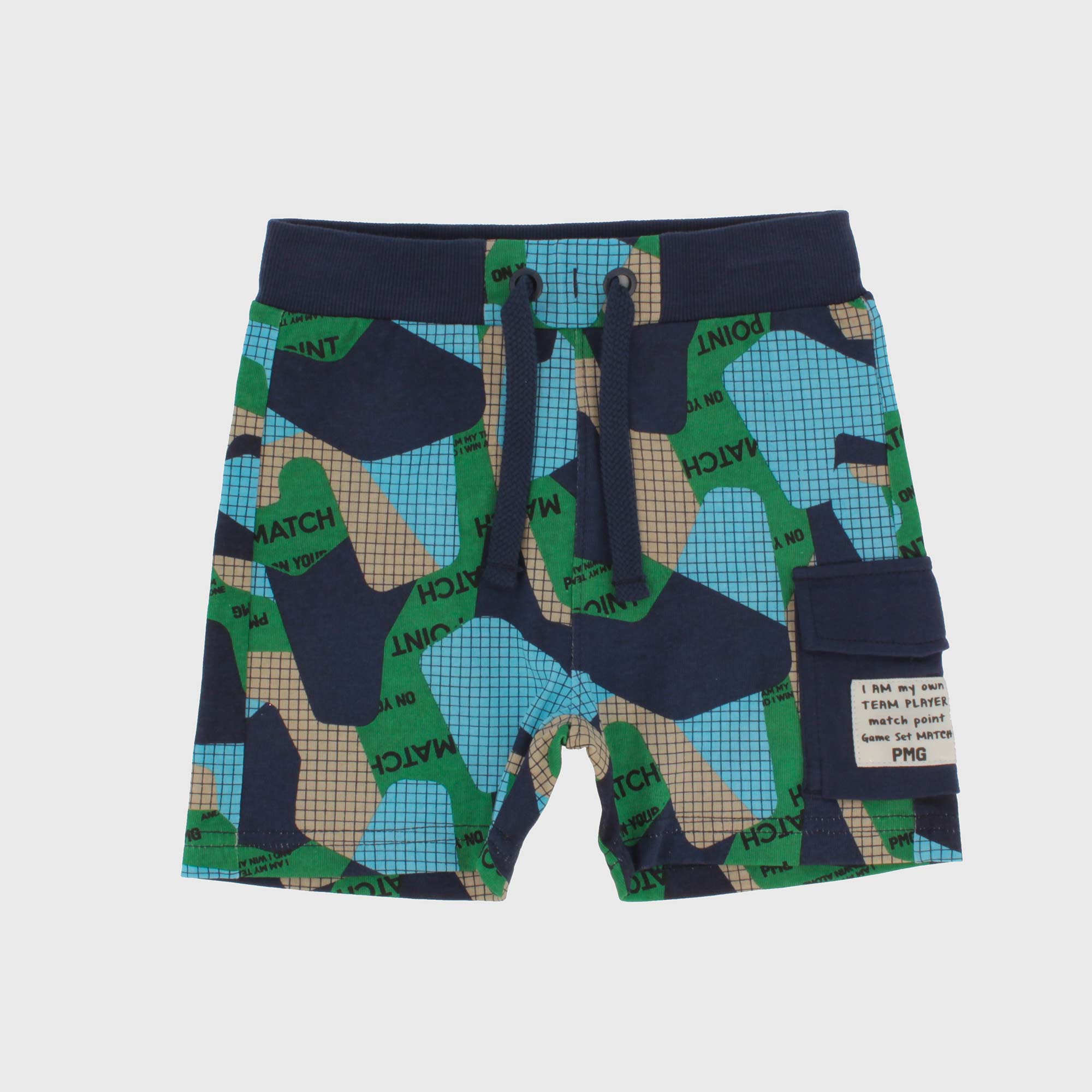 Bermudashorts aus bedrucktem Jersey mit elastischer Taille und vorderen Schnürsenkeln. Seitentasche.