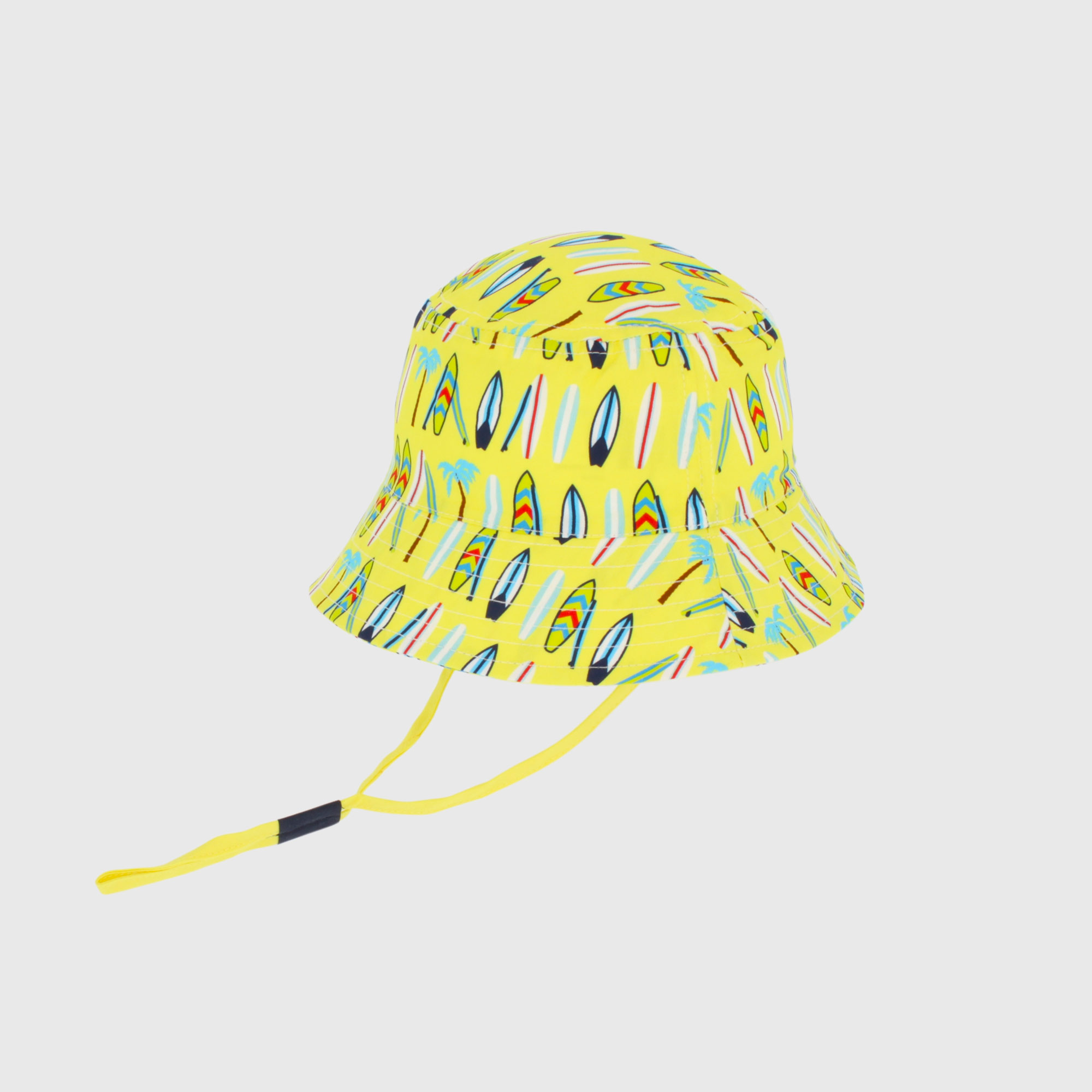 Fischerhut mit Surf-Print. Verschluss mit verstellbarem Riemen.