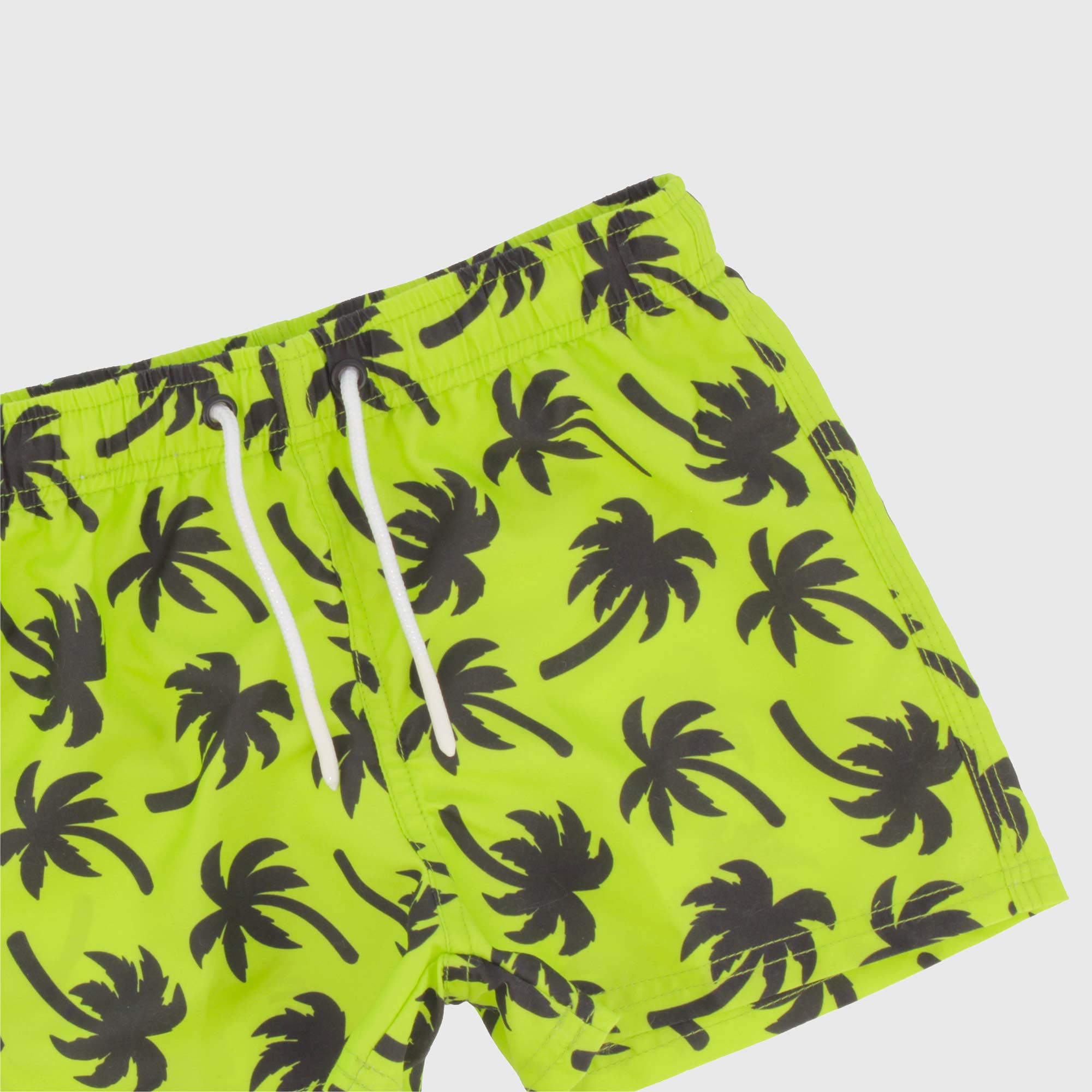 Gemusterte Strandshorts mit elastischer Taille und vorderen Schnürsenkeln. Innenhöschen aus Micro-Mesh.