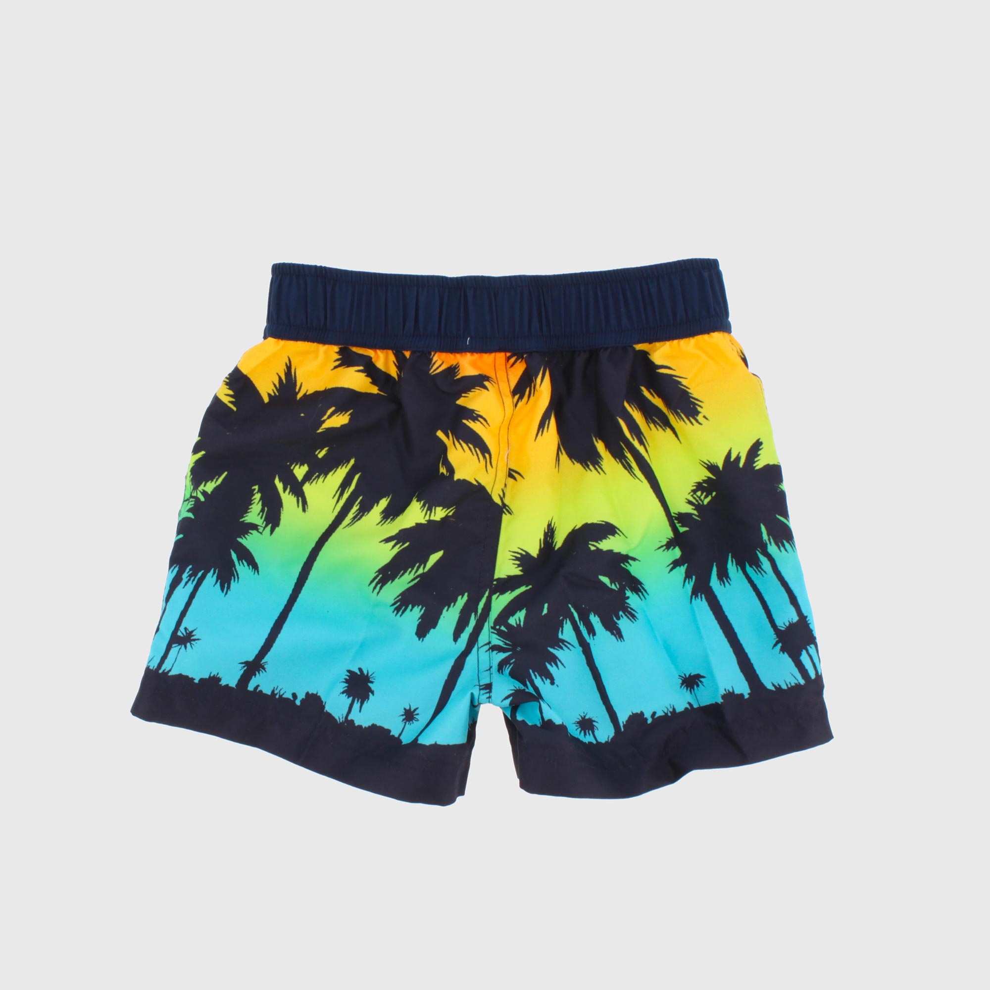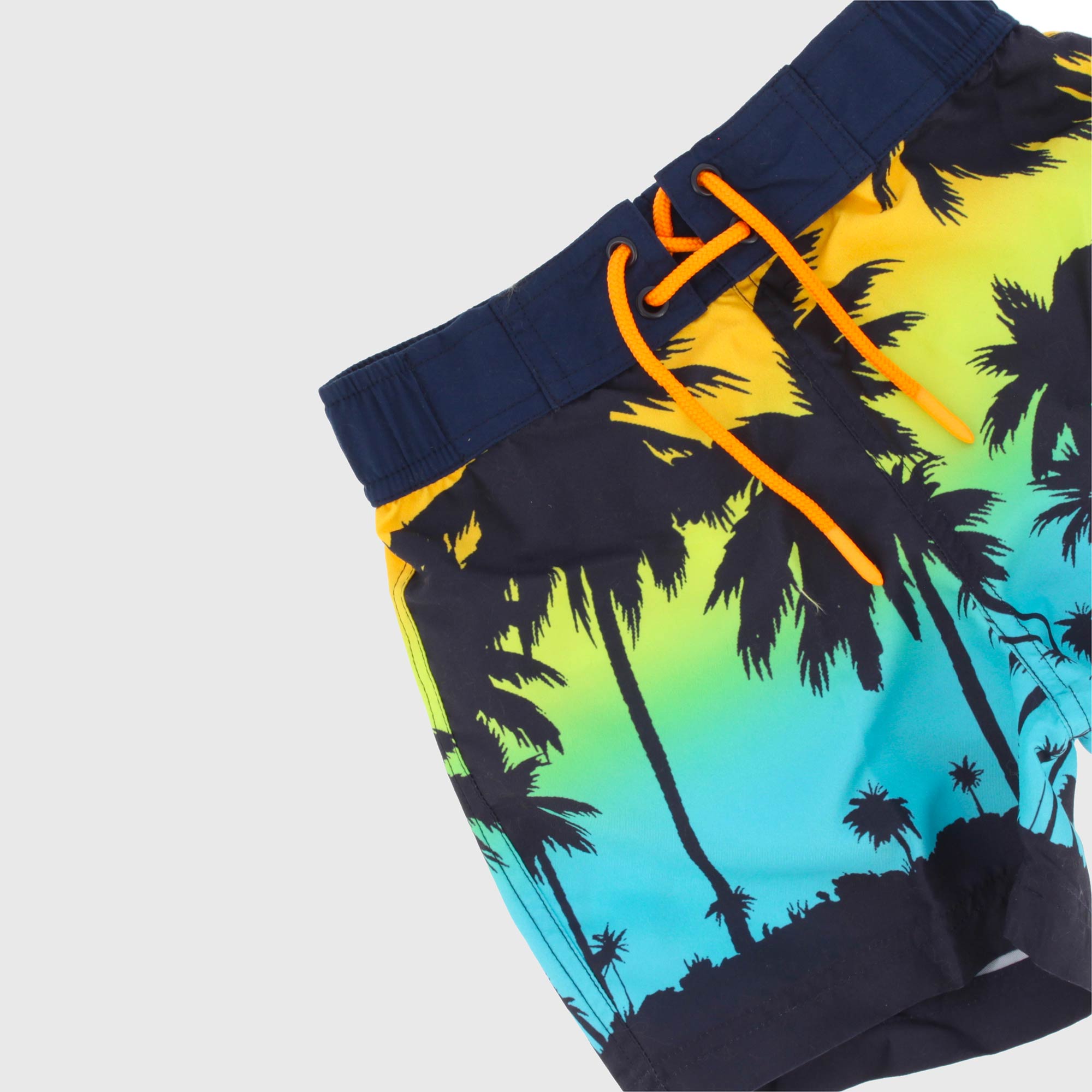 Gemusterte Strandshorts mit elastischer Taille und vorderen Schnürsenkeln. Innenhöschen aus Micro-Mesh.