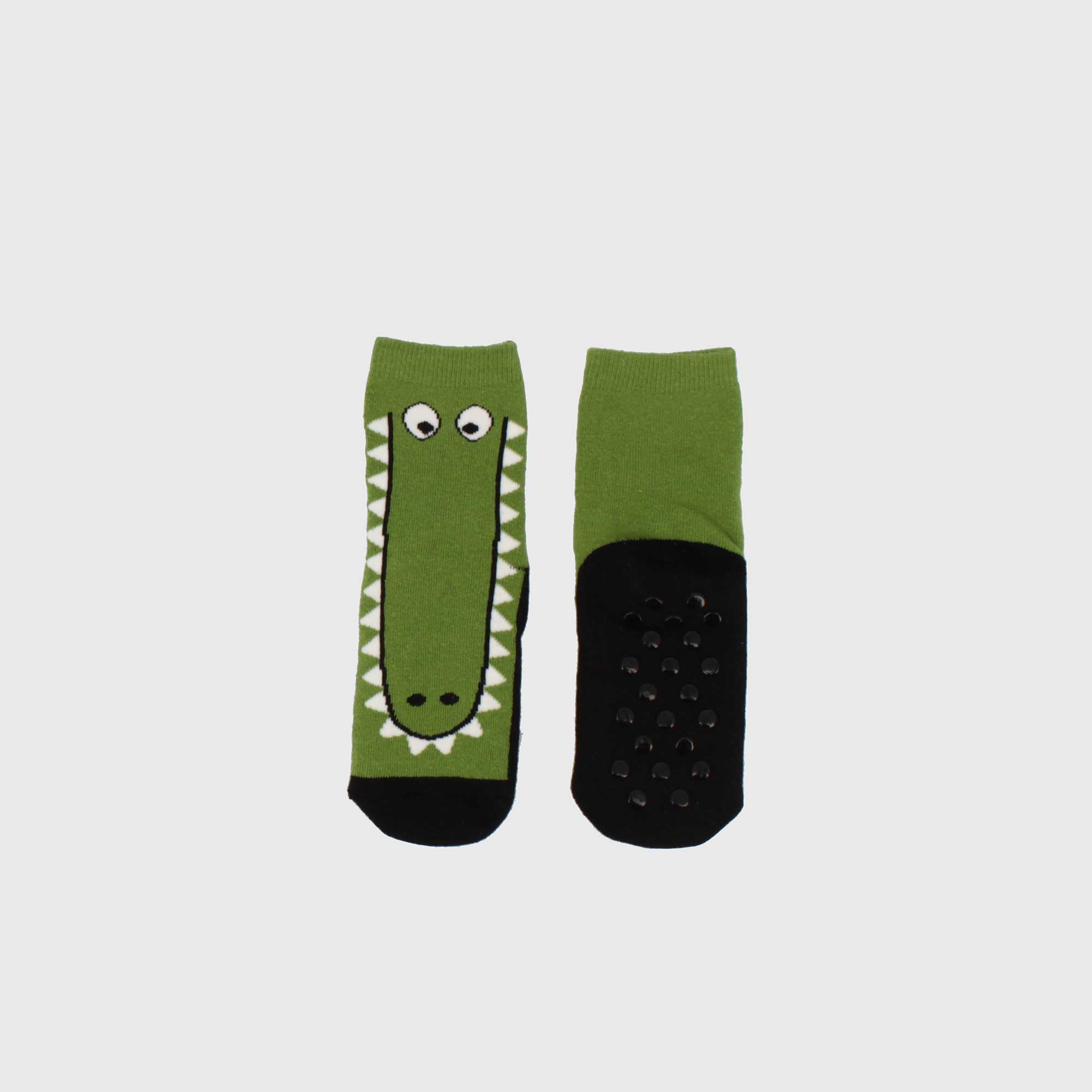 Socken mit rutschfesten Noppen, Krokodilmotiv. Elastischer Rand.