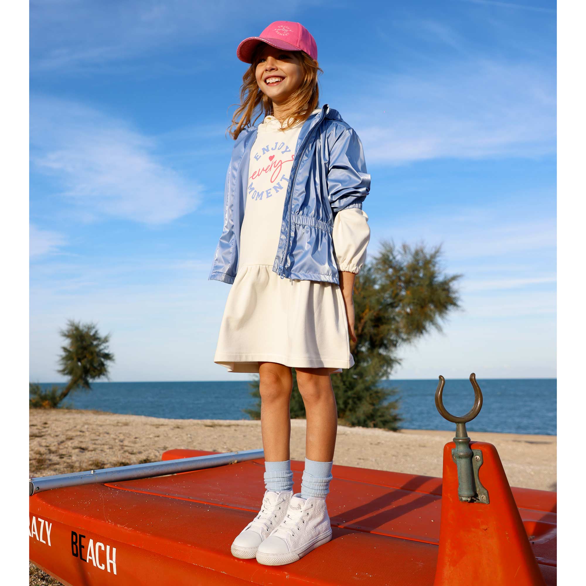 KLEID AUS FLEECE, FUER MAEDCHEN, WEISS