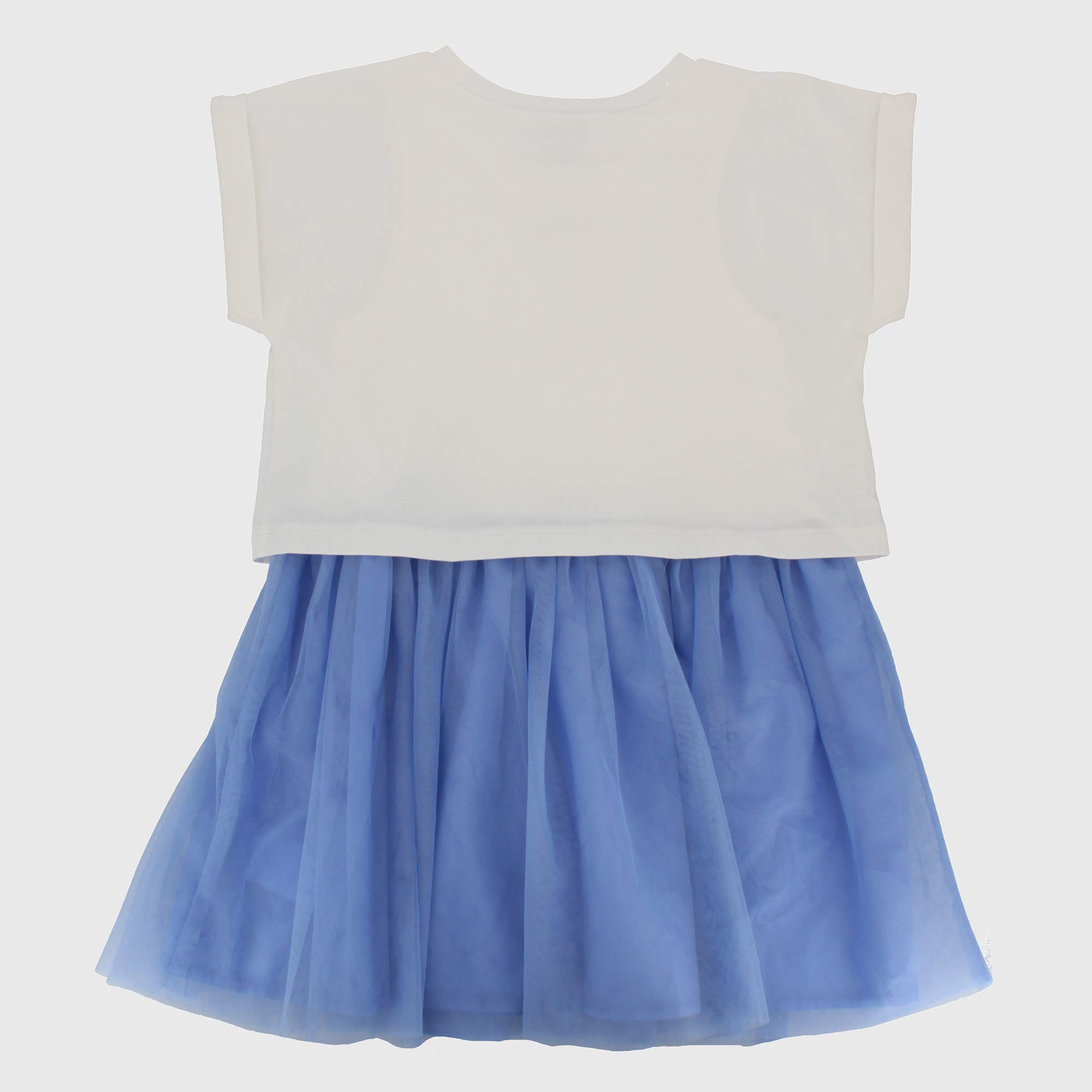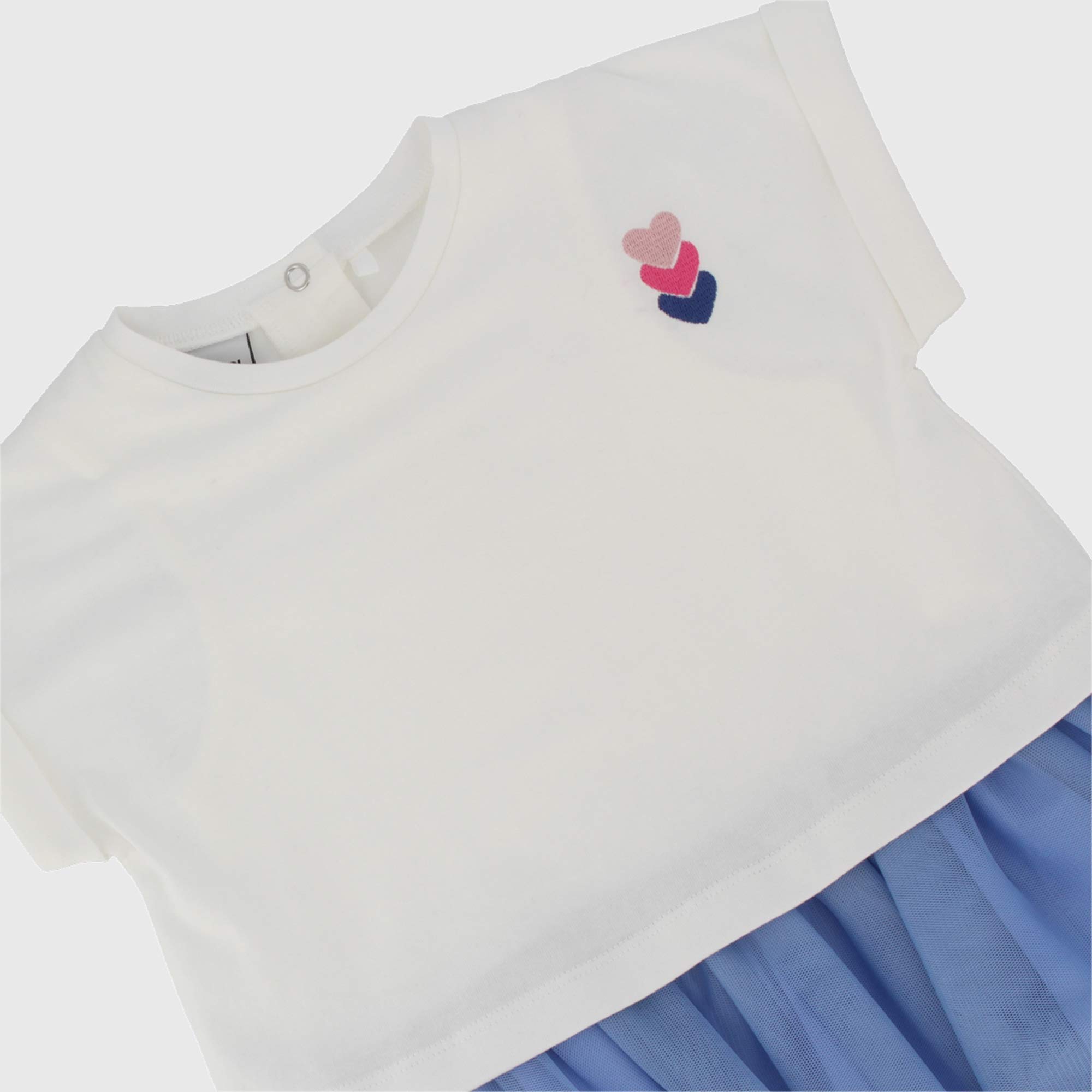 Kleid aus Jersey, Rundhals, Kurzarm. Bestickte Herzen vorne. Rock aus Tulle mit Futter.