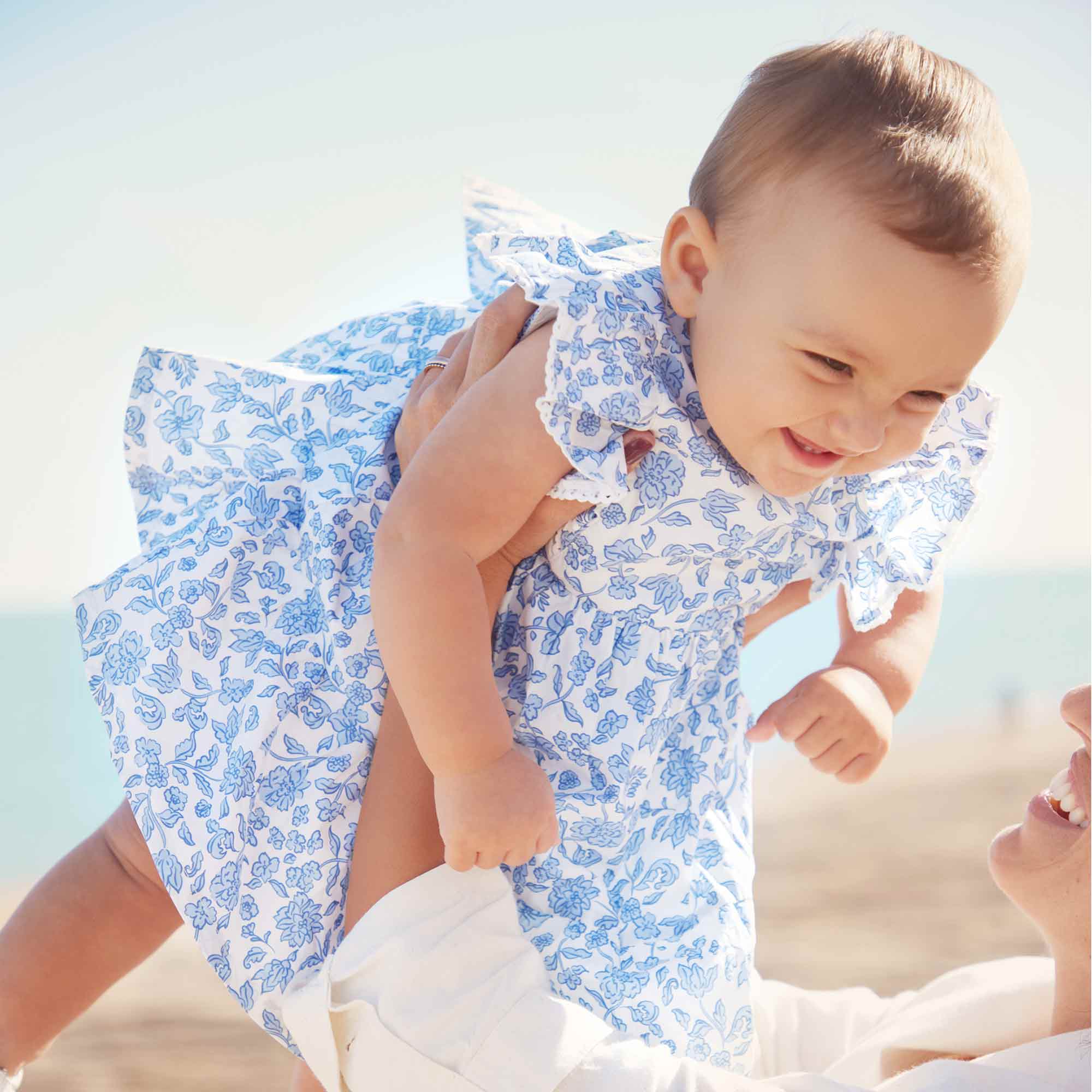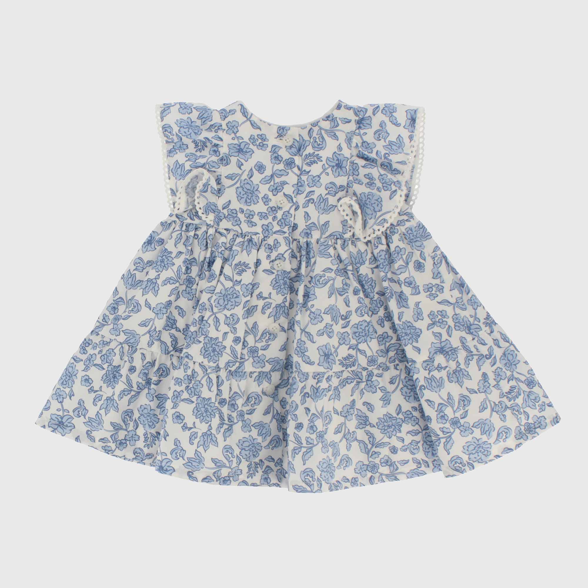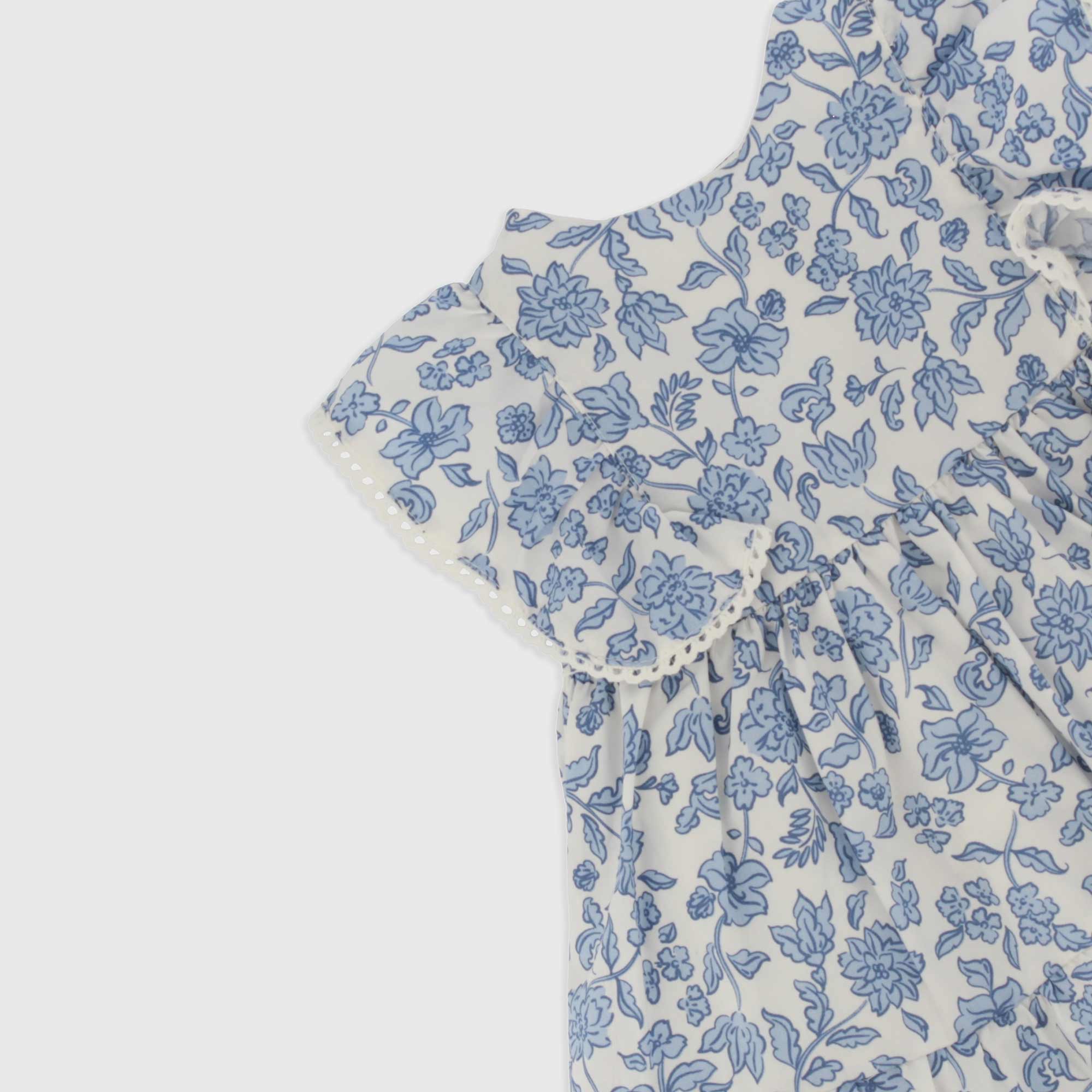Kleid aus Popeline mit Blumendruck all-over, Rundhals und Kurzaermel mit Volants. Verschluss mit Knoepfe auf der Rueckseite. Innenfutter.