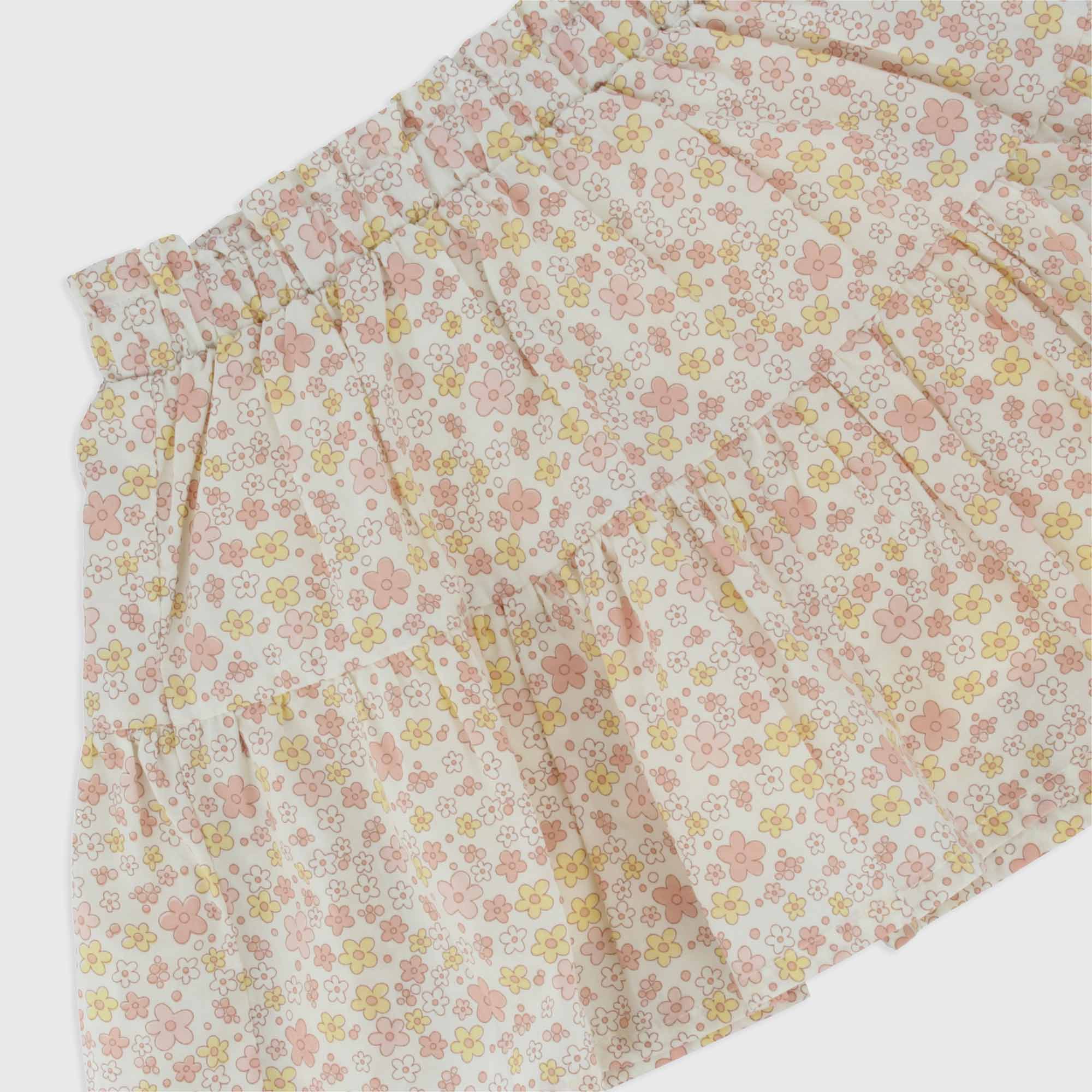 Rock aus bedruckte Baumwolle mit elastische Taille und Volants. Futter aus jersey.