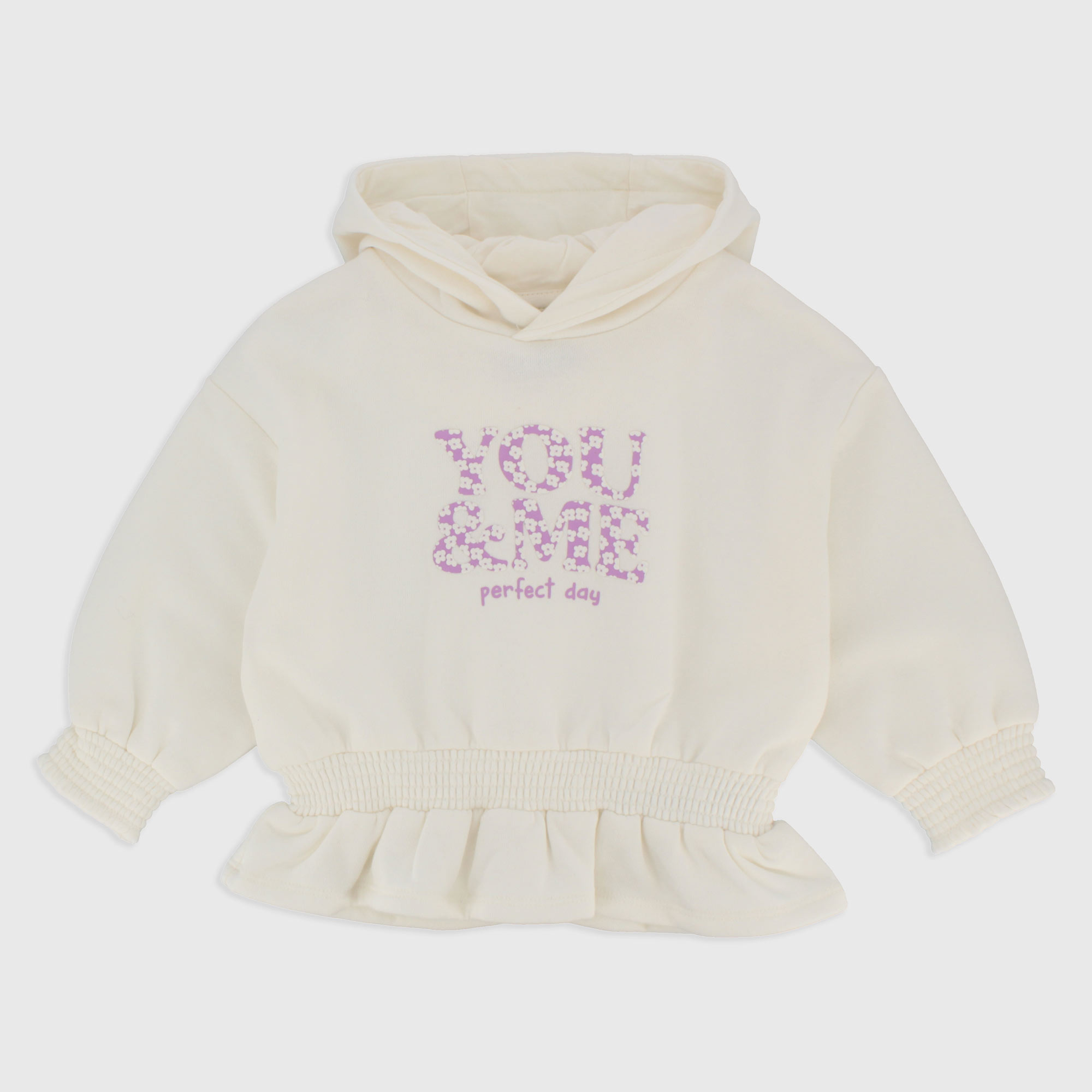 Sweat-shirt aus Fleece mit Kapuze Langarm. Druck mit Relief-Details vorne. Elastische Raffung an der Taille und auf Manschetten.