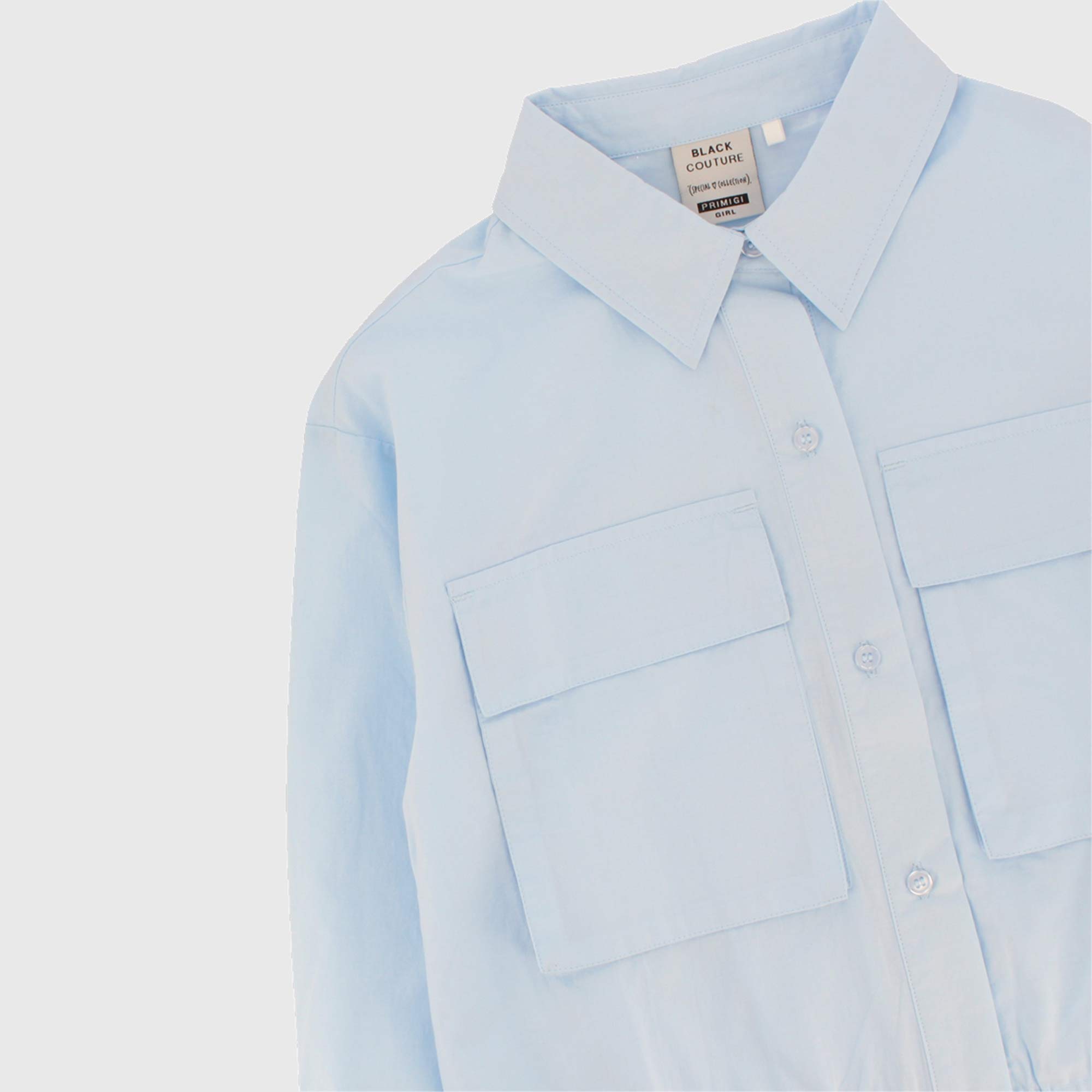 Hemd aus Popeline, Langarm. Verschluss mit Knoepfe vorne. Patch-Taschen mit Klappe. Unten mit Gummizug.