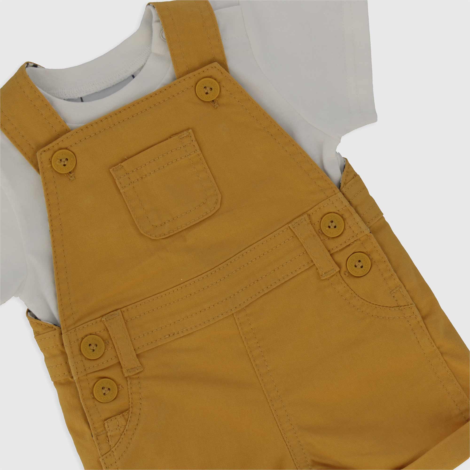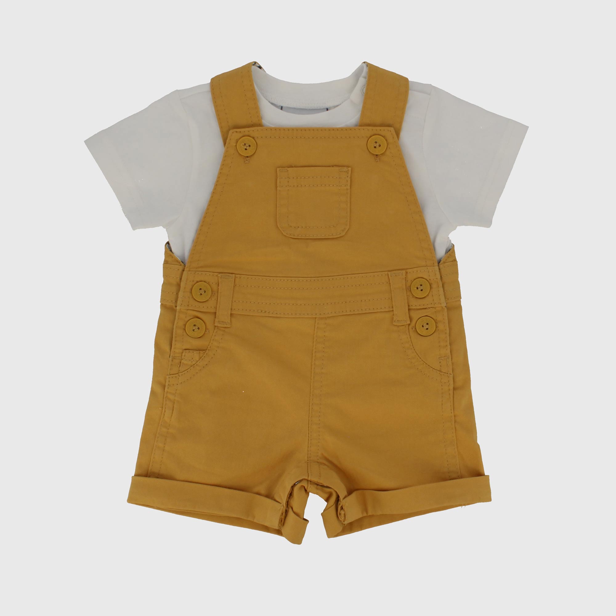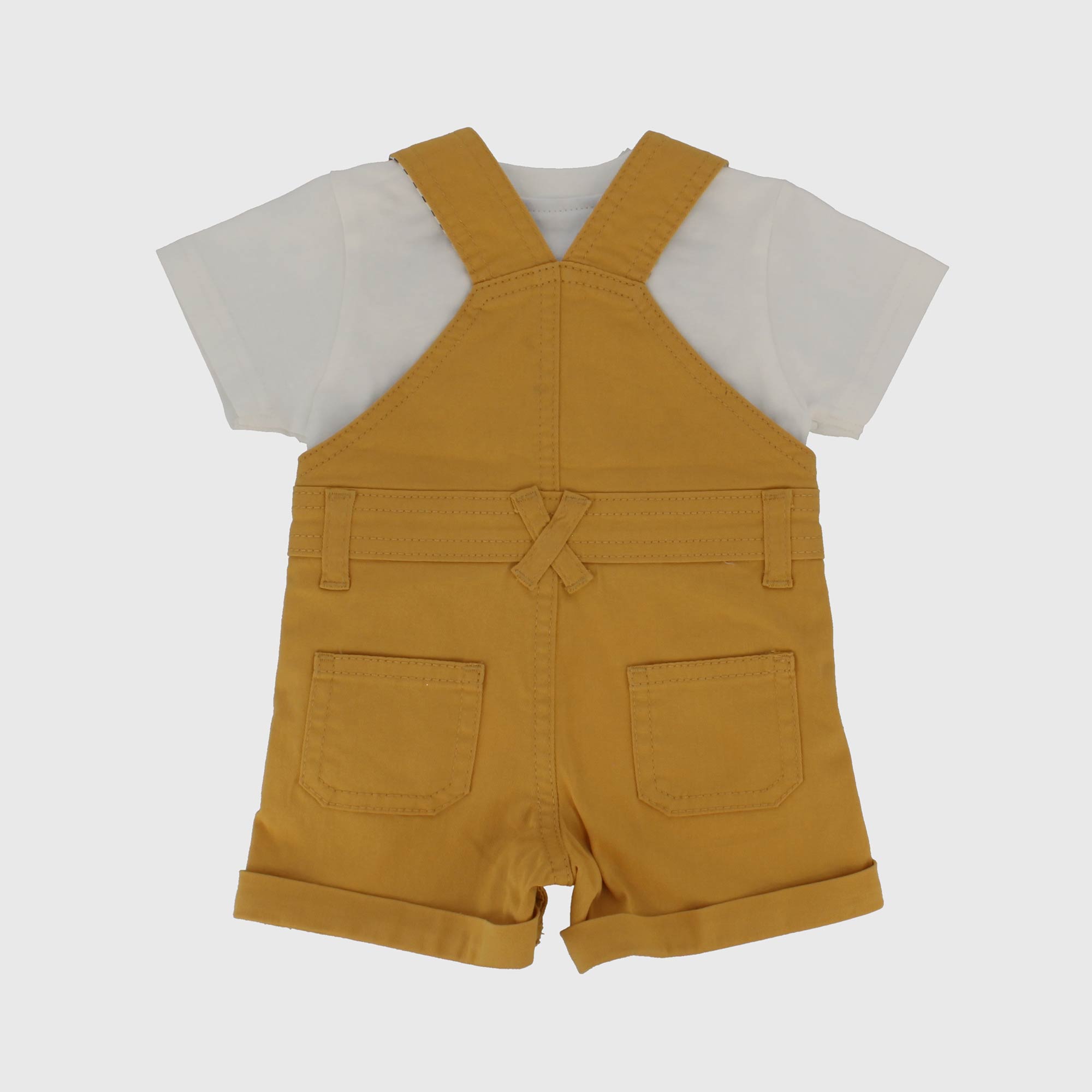 Set bestehend aus zwei Teile. T-Shirt aus Jersey Rundhals, Kurzarm. Verschluss mit automatische Knoepfe auf der Schulter. Salopette aus Gabardine mit Verschluss mit automatische Knoepfe auf Schritt. Schlaufen auf der Taille und Patch-Taschen hinten.
