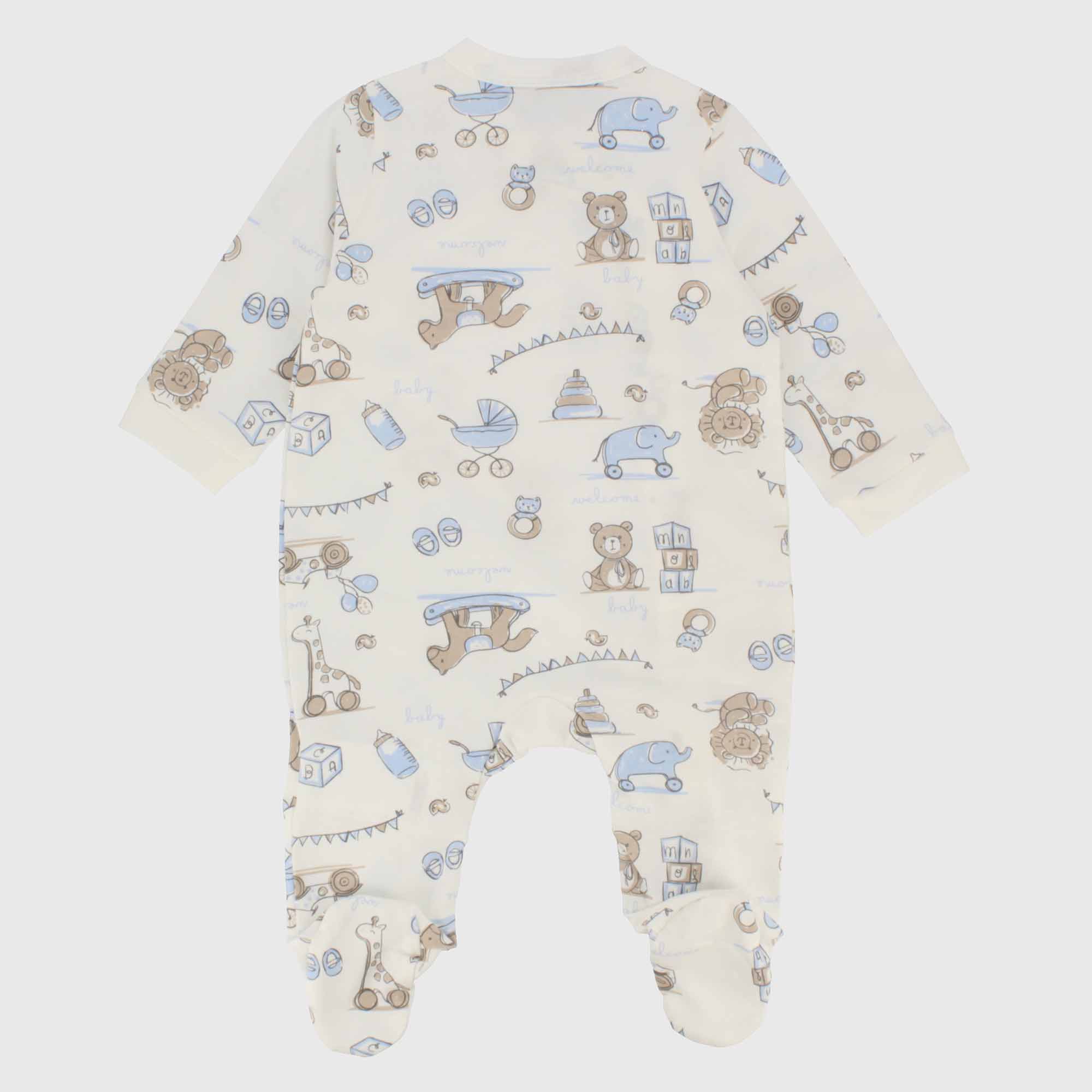 Overall aus Jersey mit Rundhals, Langarm. Kimono Verschluss. Mit automatischen Knoepfe. All-over Aufdruck .