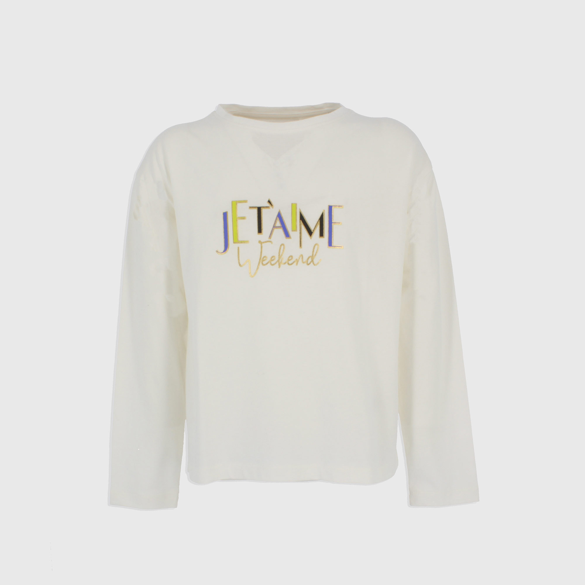 T-Shirt aus Jersey, Rundhals, Langarm. Druck mit metallisierte Details vorne.