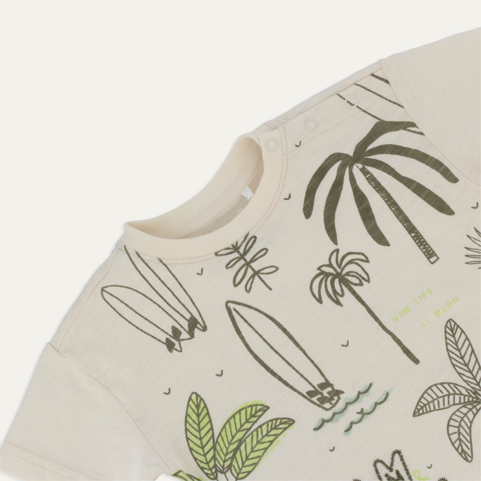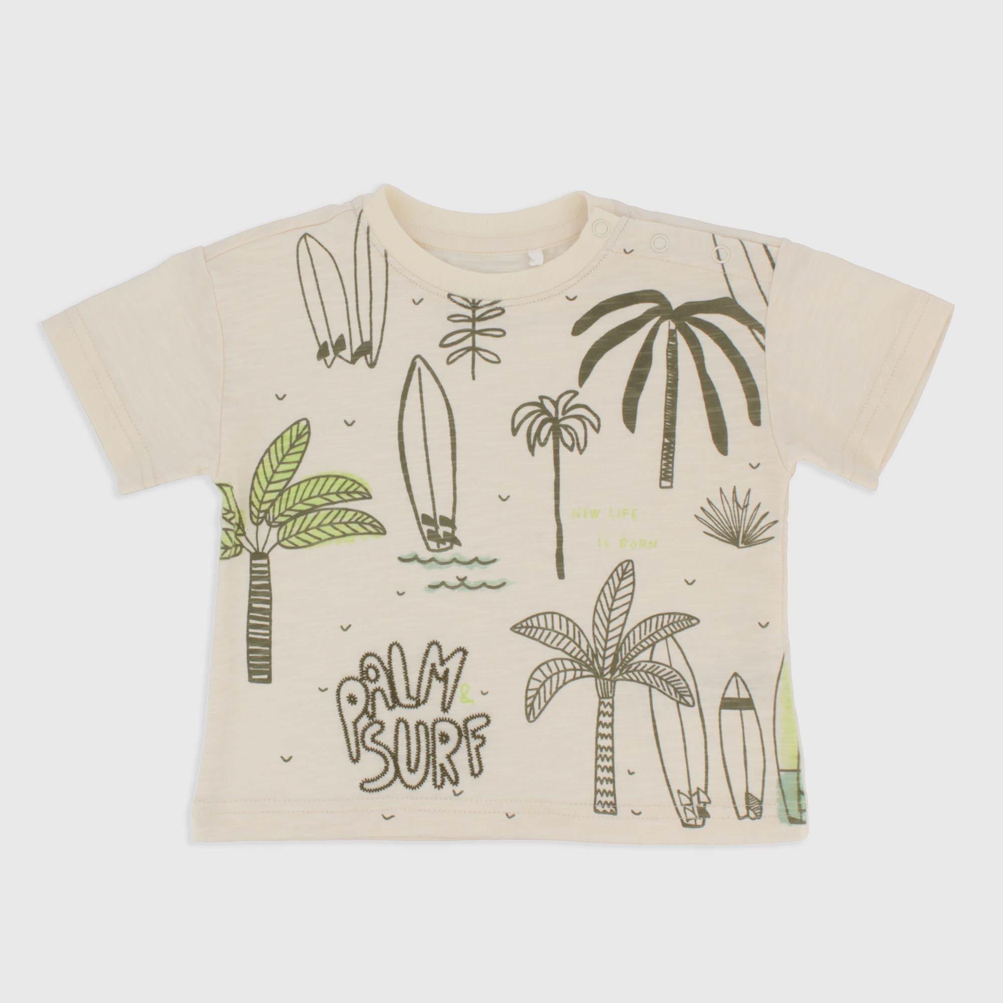 T-Shirt oversize aus geflammtes Jersey, Rundhals, Kurzarm. Verschluss mit automatische Knoepfe auf der Schulter. Druck vorne.
