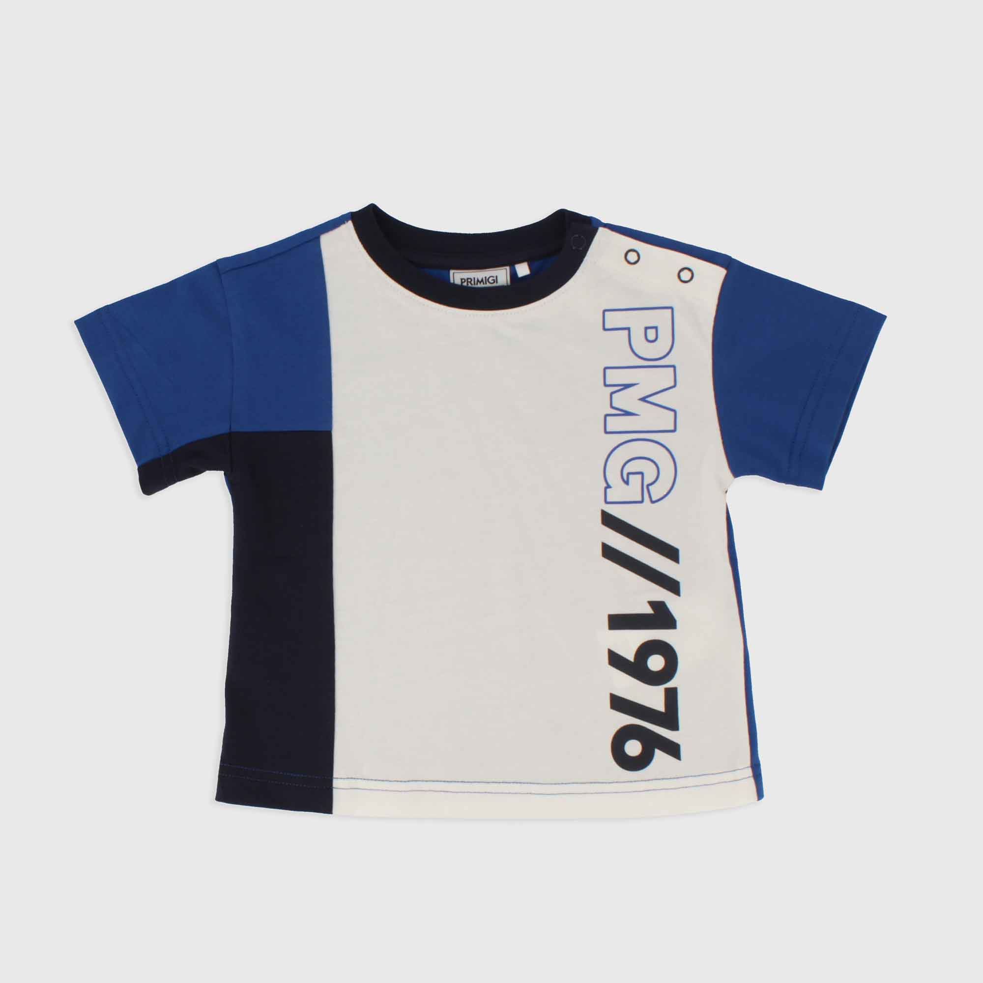 T-Shirt aus Jersey, Rundhals, Kurzarm. Verschluss mit automatische Knoepfe auf der Schulter. Druck vorne und hinten.