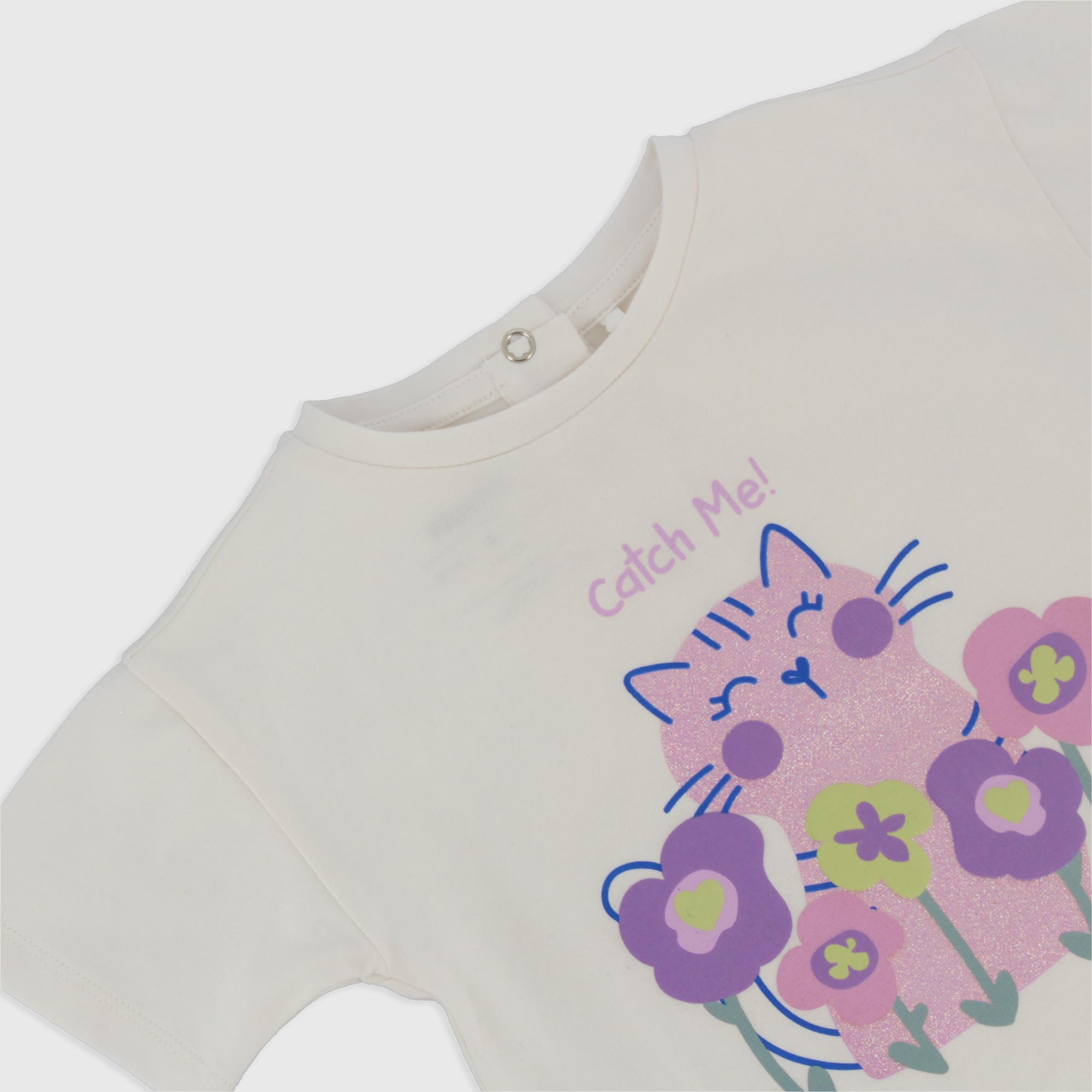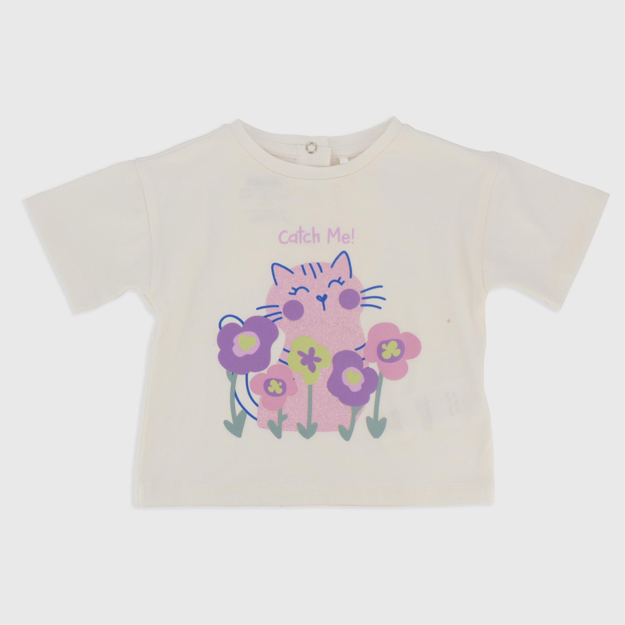 T-Shirt oversize aus Jersey, Rundhals, Kurzarm. Hinterer Verschluss mit automatischen Knoepfe. Druck mit Glitter-Details vorne.