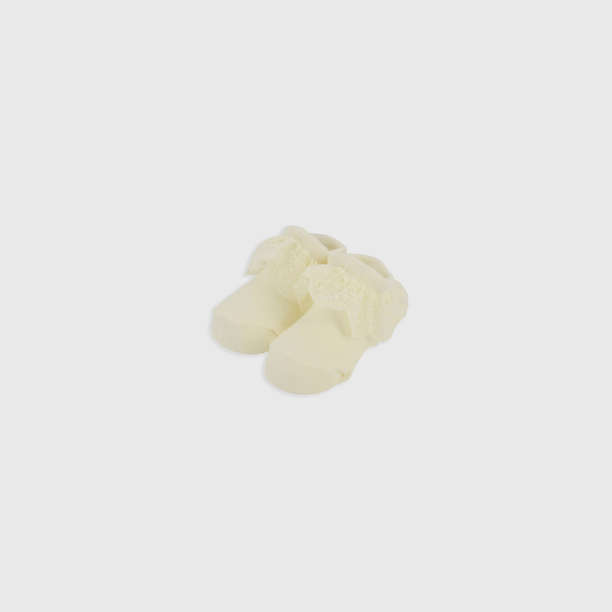 Struempfe fuer Neugeborene einfarbig. Mit Rueschen aus Spitze. Elastische Kante.