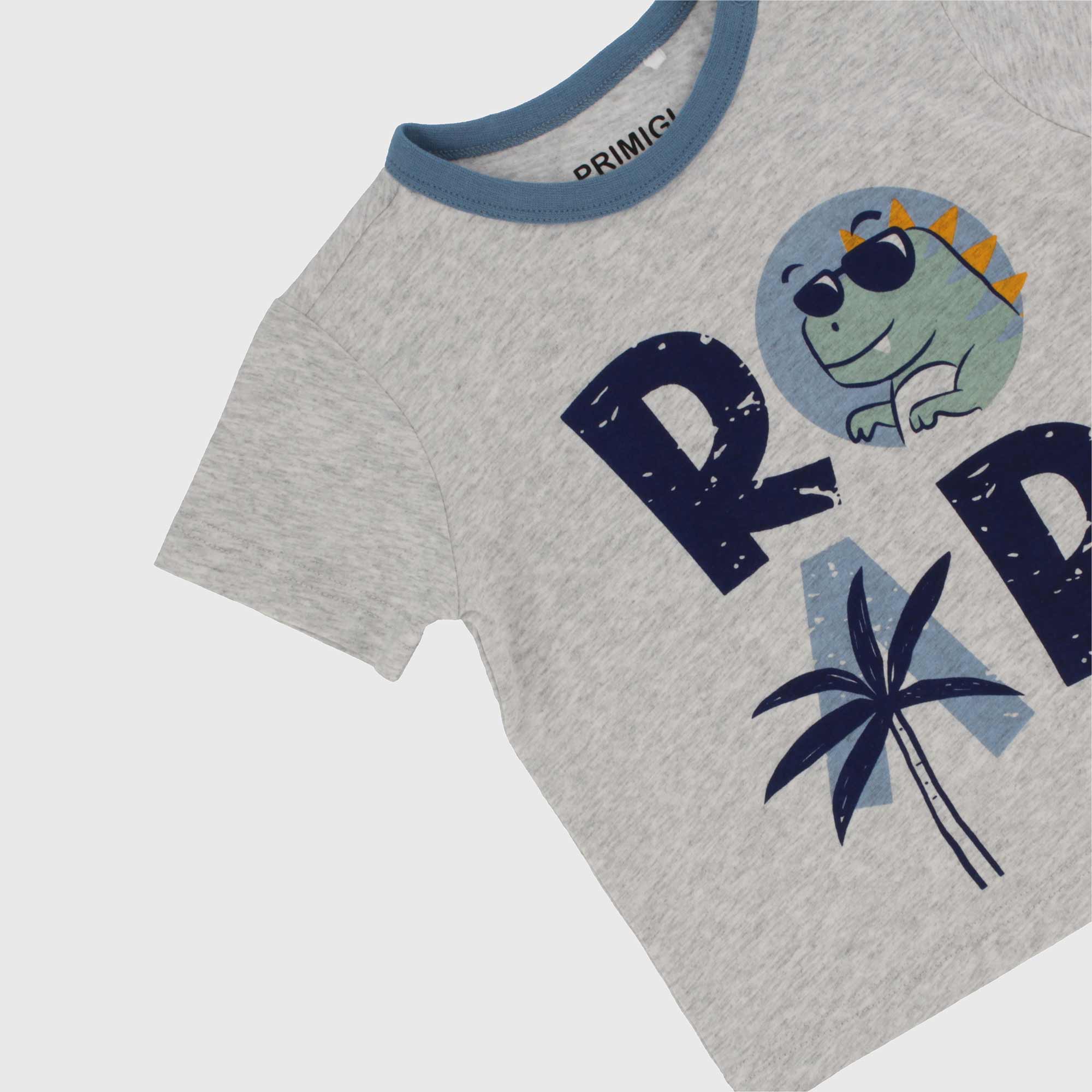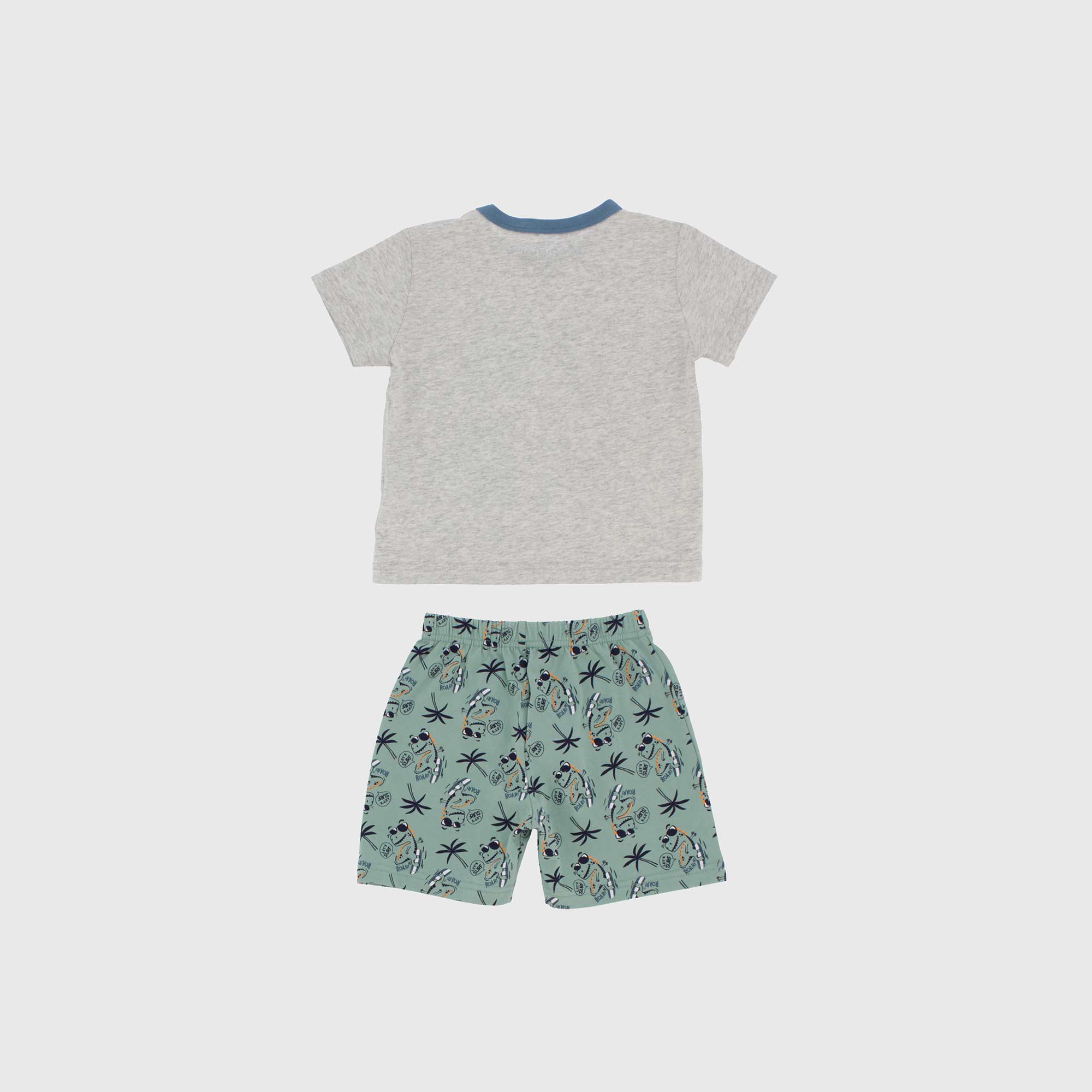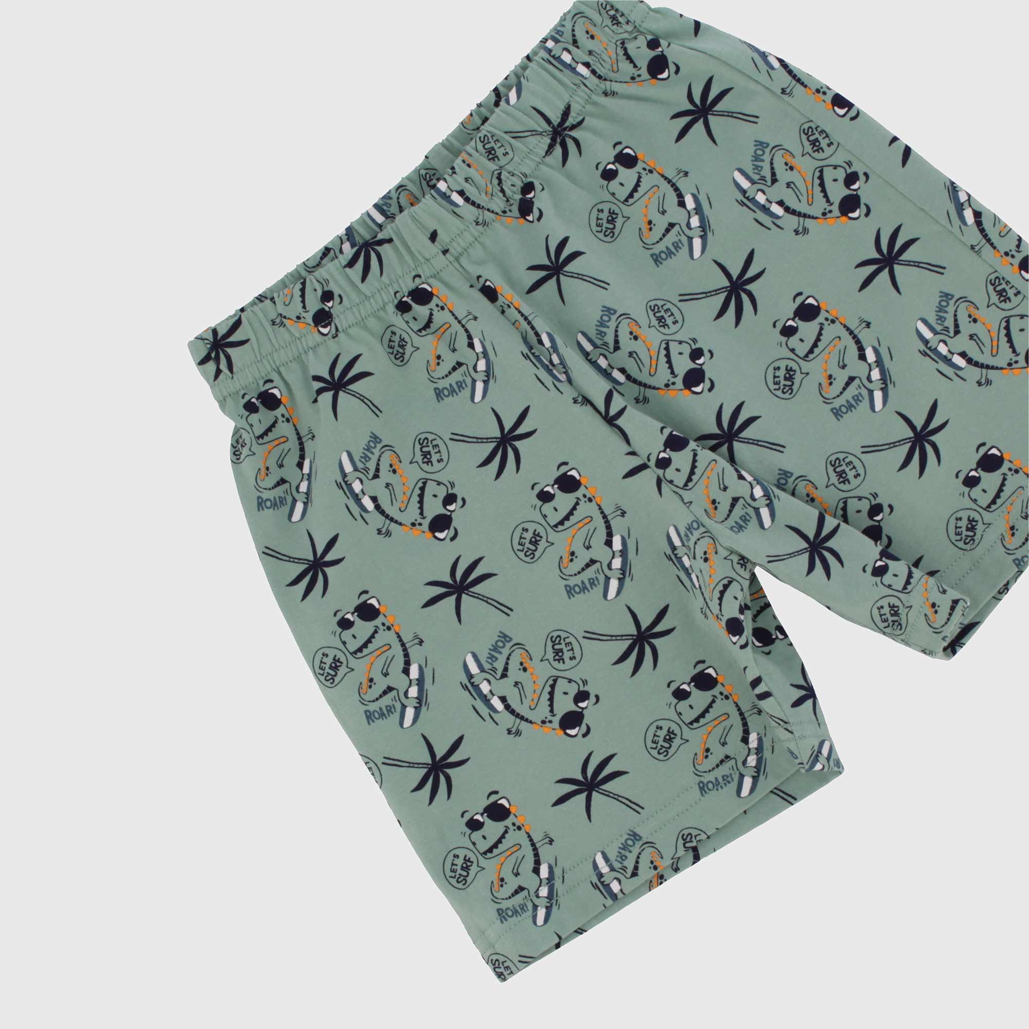 Set Pyjama aus jersey. T-Shirt Rundhals mit kurzen Aermeln, Verschluss mit automatische Knoepfe auf der Schulter. Druck vorne. Bermuda mit elastische Taille. Druck all over.