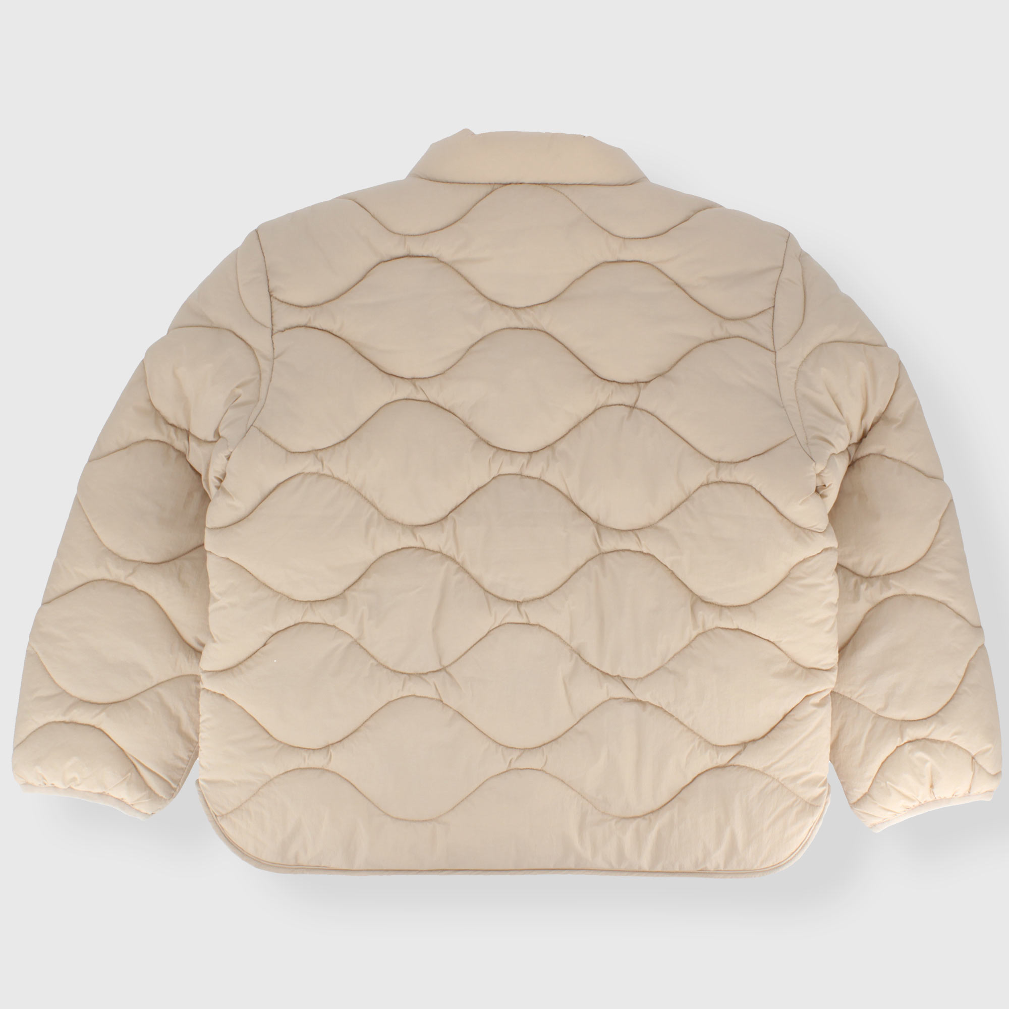 100g gesteppte Nylonjacke mit langen Ärmeln. Druckknopfverschluss vorne. Seitentaschen. Elastisches Bündchen.