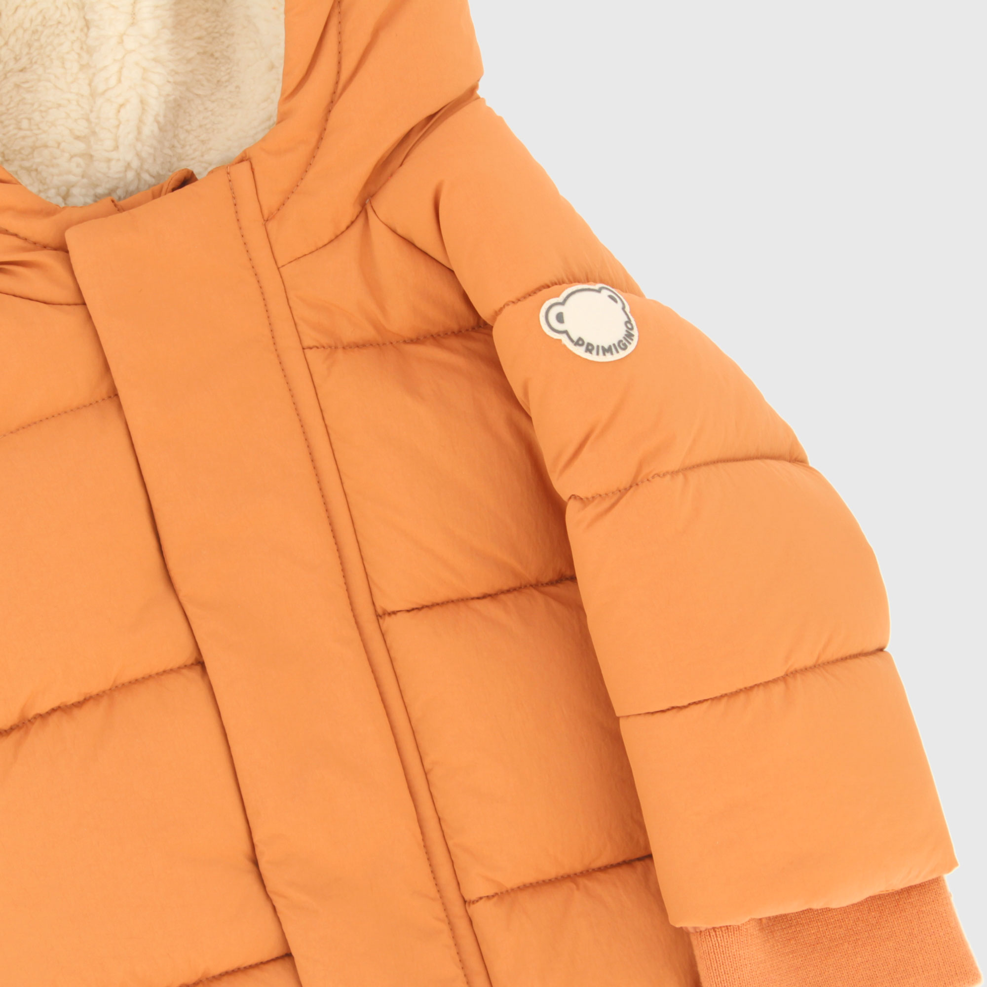 Nylonjacke mit Kapuze und Fellfutter, lange Ärmel. Reißverschluss und Druckknopfverschluss vorne. Logo-Patch am Ärmel. Gerippte Bündchen. Innenfutter aus Fleece.
