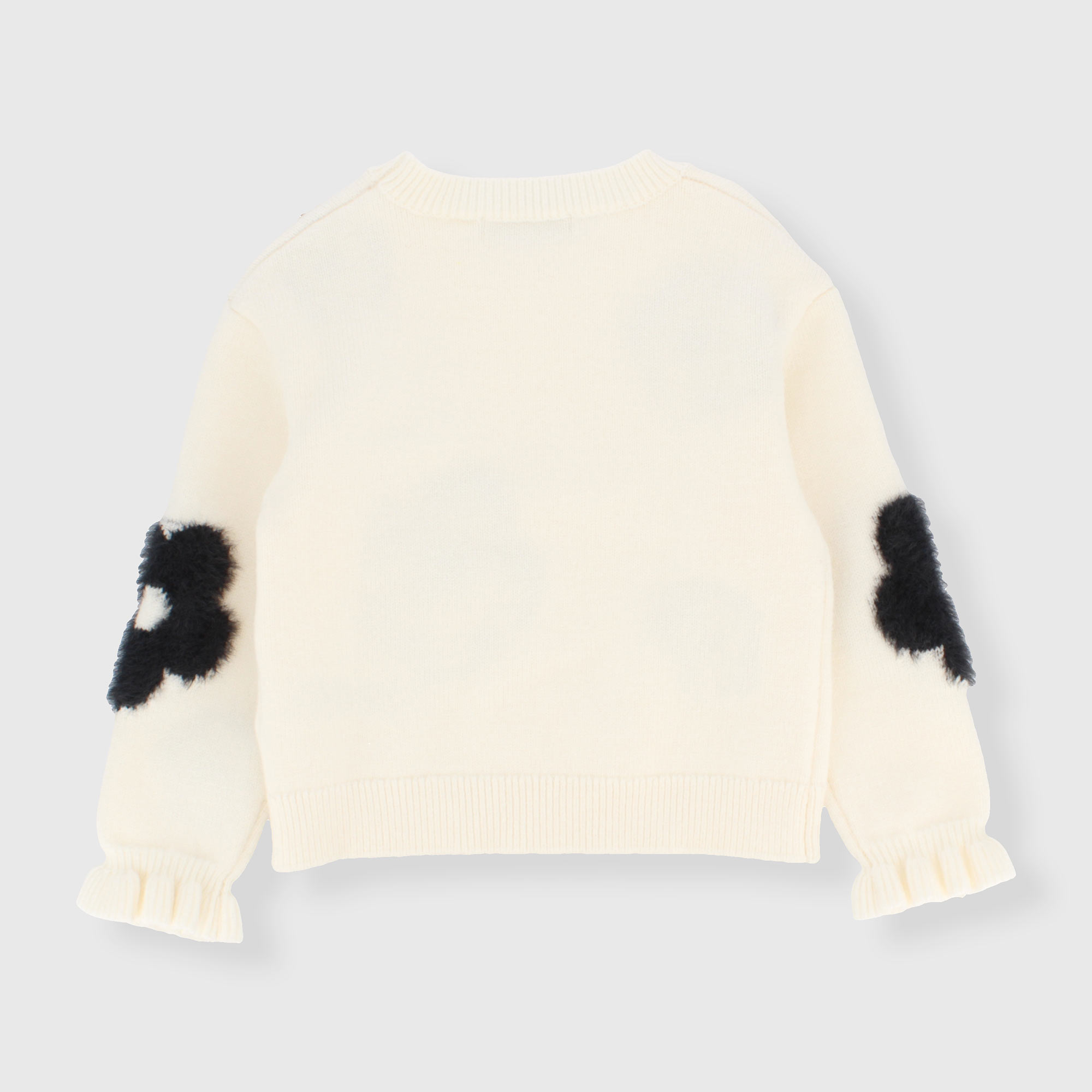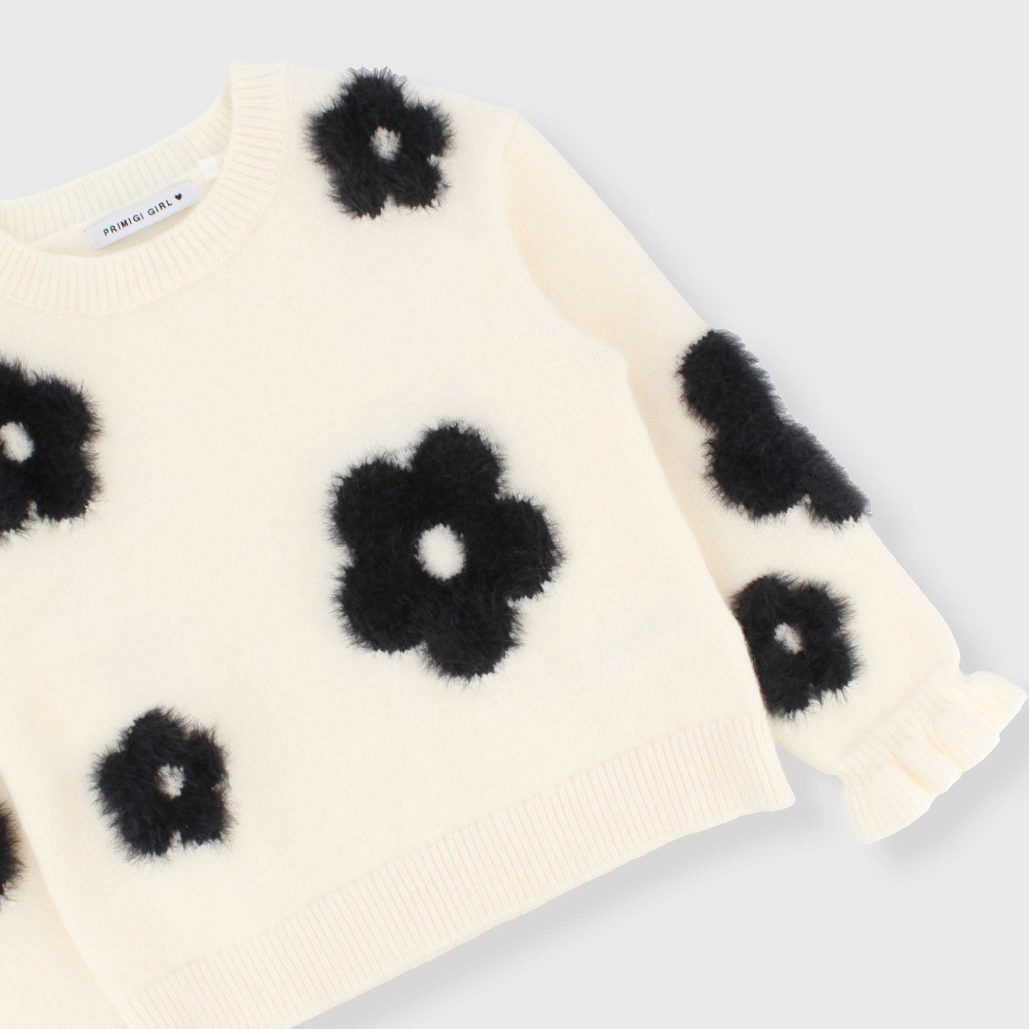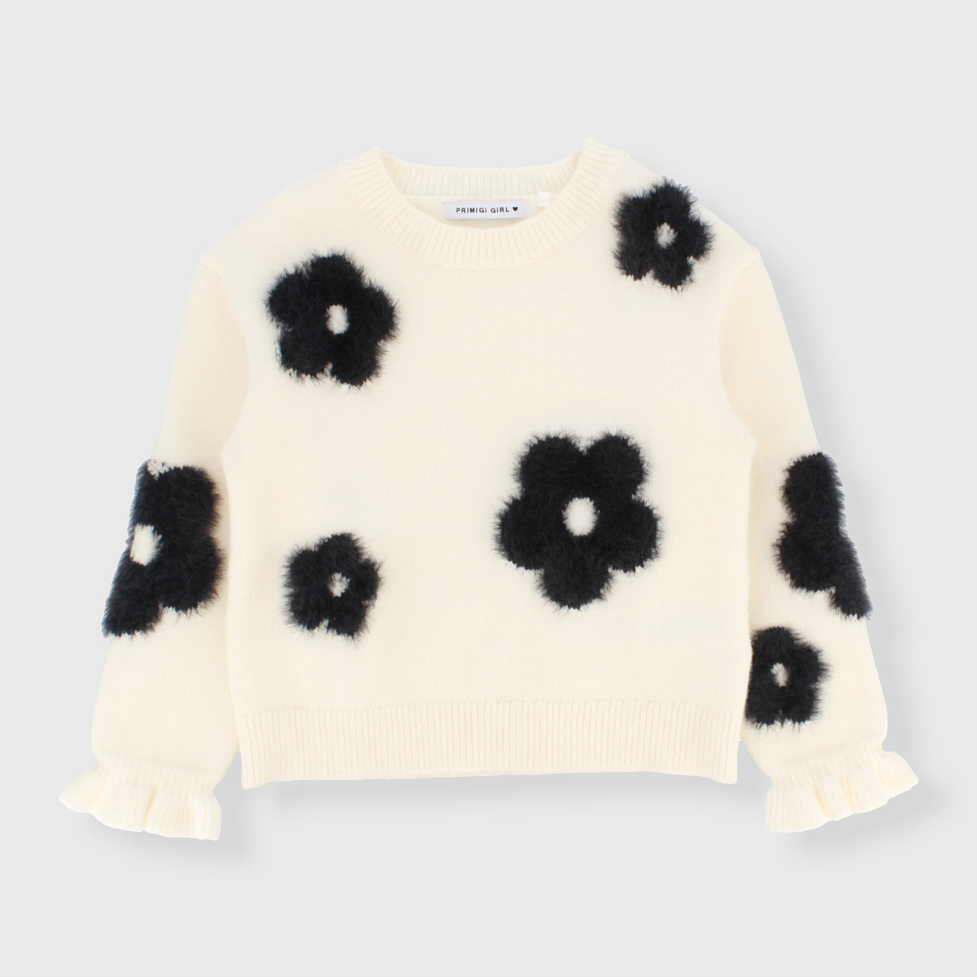 Weicher Strickpullover, Rundhalsausschnitt, lange Ärmel. Blumen-Jacquard-Verarbeitung.