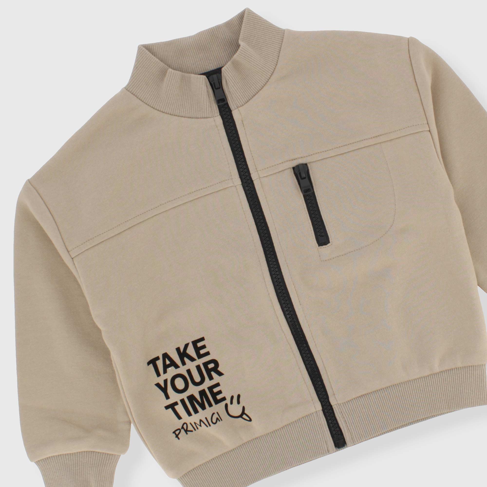 Sweatshirt mit weich gebürsteter Innenseite, halbem Kragen und langen Ärmeln. Reißverschluss vorne. Brusttasche mit Reißverschluss. Druck mit Schriftzug auf der Vorderseite. Gerippter Kragen, Bündchen und Saum.