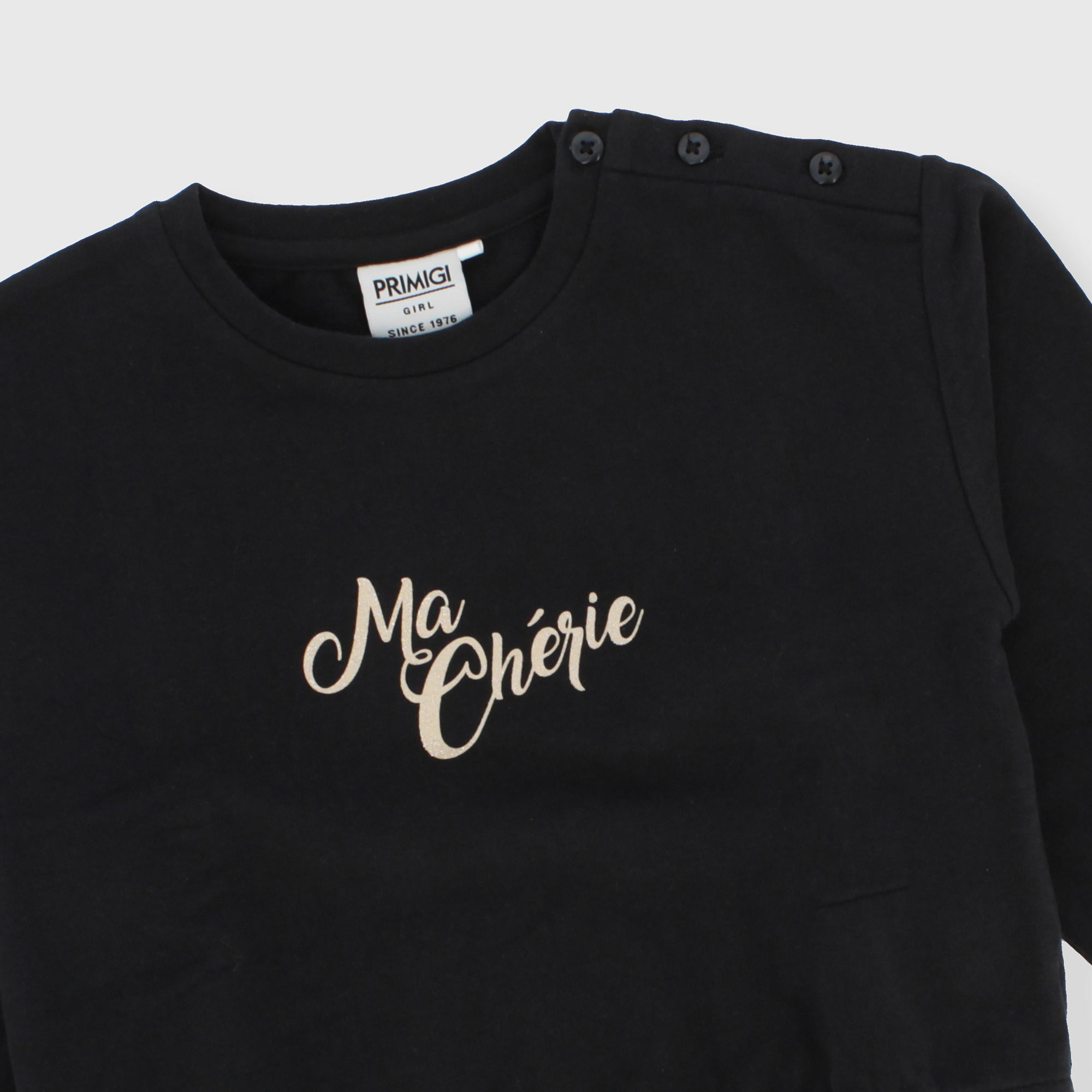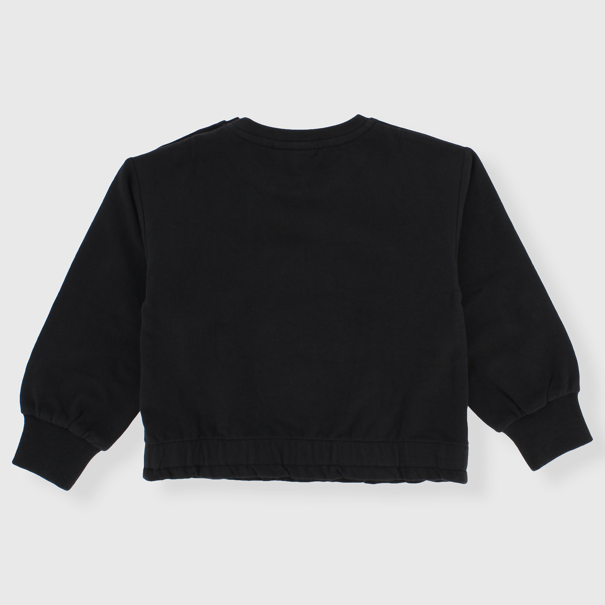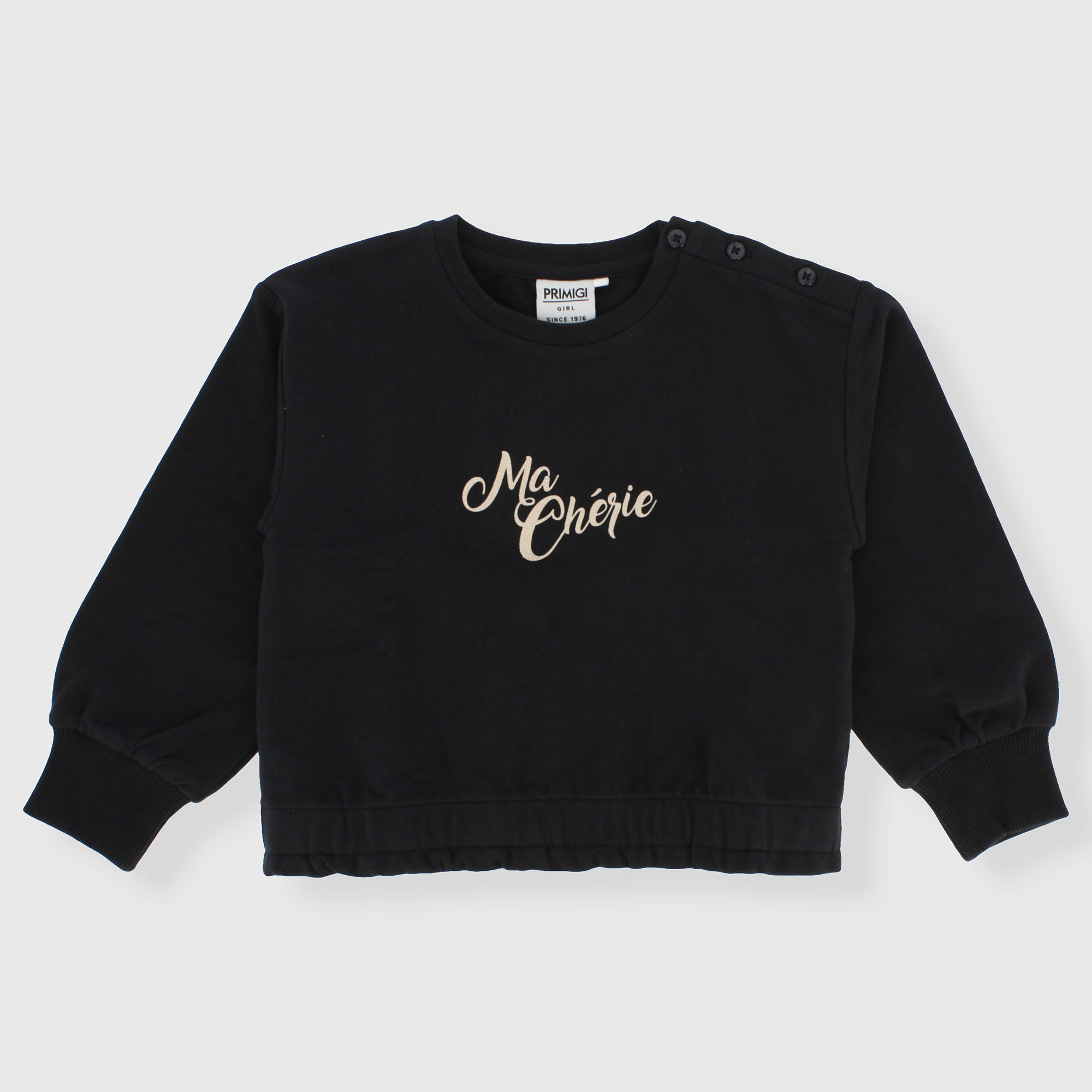 Langärmliges Sweatshirt mit Rundhalsausschnitt. Knopfverschluss an der Schulter. Glitzerdruck auf der Vorderseite. Geripptes Bündchen und elastischer Saum.