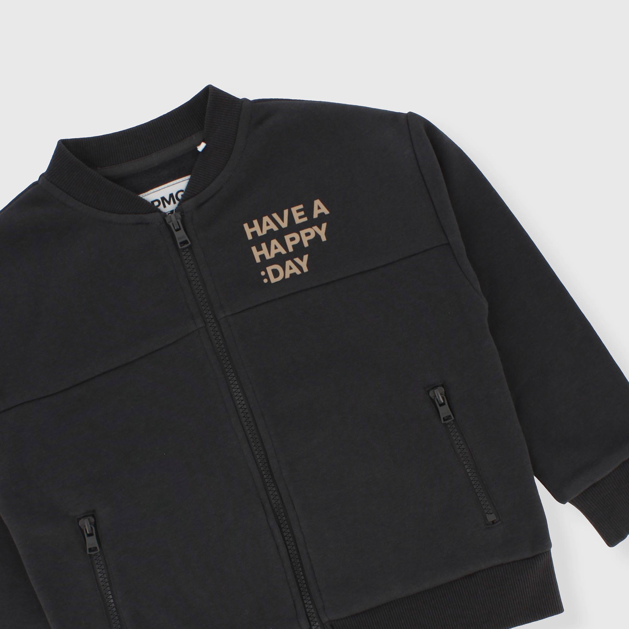 Sweatshirt mit weich gebürsteter Innenseite, halbem Kragen und langen Ärmeln. Reißverschluss vorne. Reißverschlusstaschen vorne. Vorne und Rückseite mit Schriftzug. Gerippter Kragen, Bündchen und Saum.