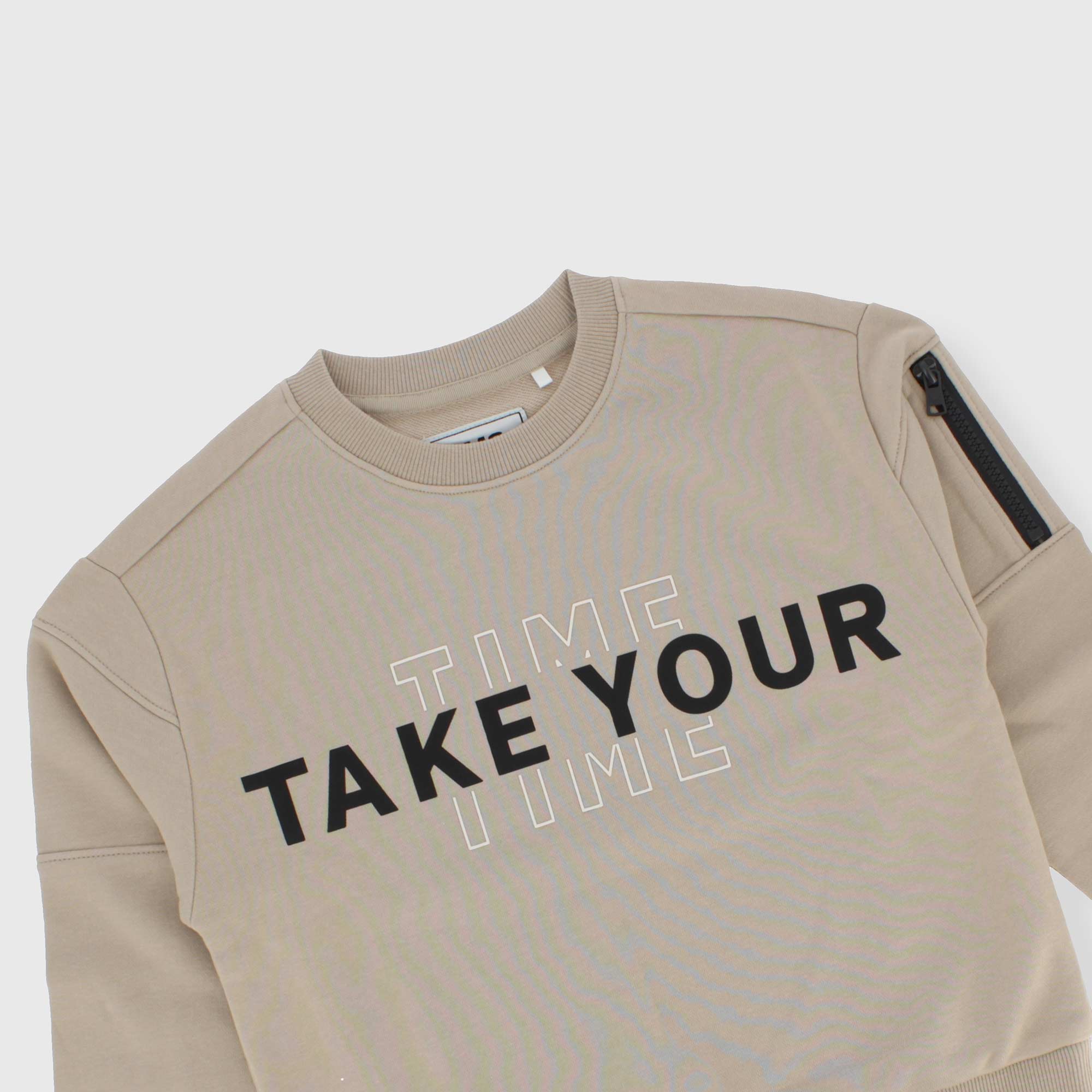Langärmliges Sweatshirt mit Rundhalsausschnitt. Druck mit Gummieffekt auf der Vorderseite und Reißverschlusstasche am Arm. Gerippter Kragen, Bündchen und Saum.