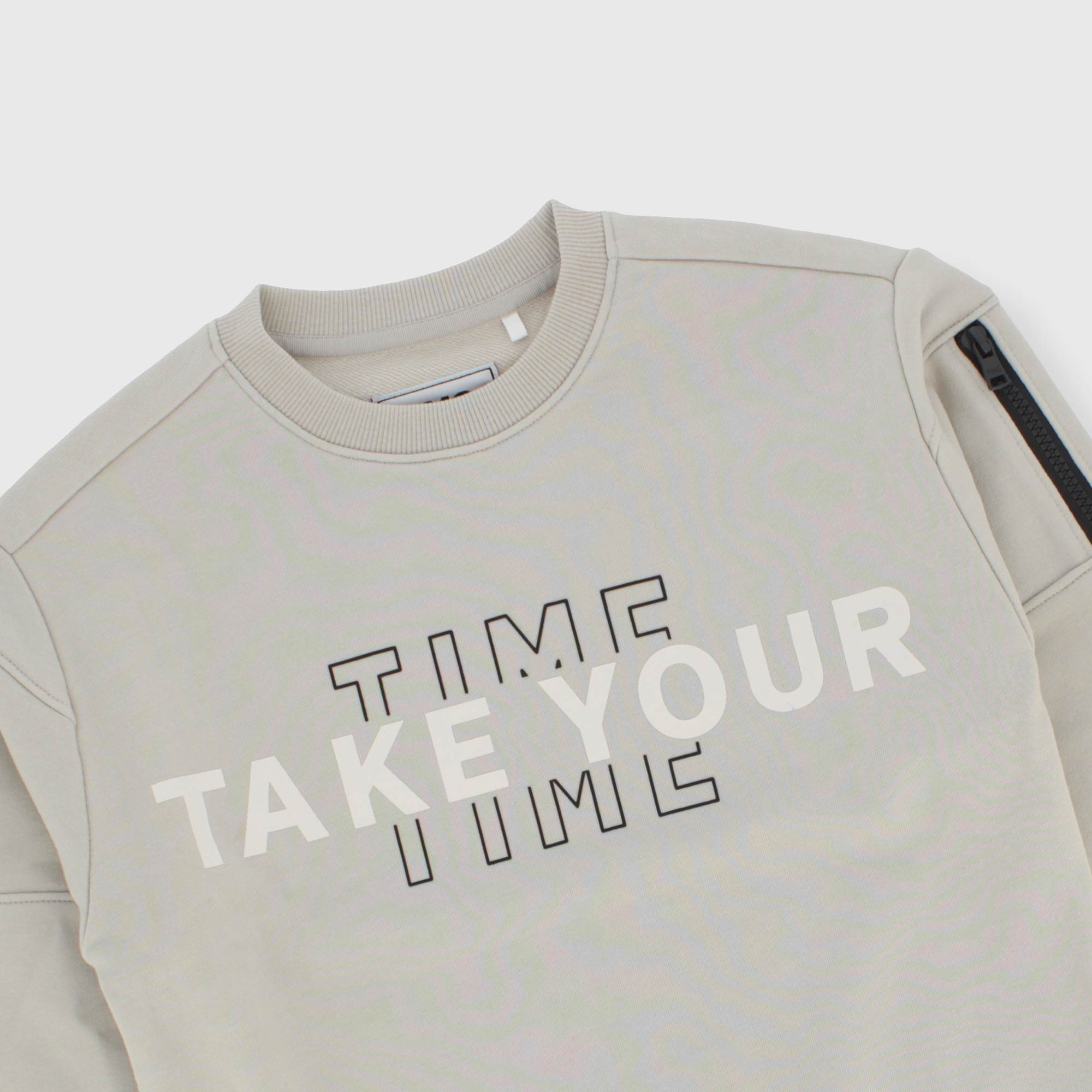Langärmliges Sweatshirt mit Rundhalsausschnitt. Druck mit Gummieffekt auf der Vorderseite und Reißverschlusstasche am Arm. Gerippter Kragen, Bündchen und Saum.