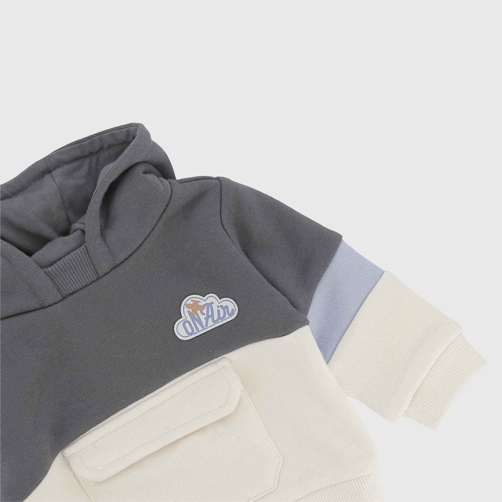 Sweatshirt mit weich gebürsteter Innenseite, Kapuze und langen Ärmeln. Kängurutasche mit Klappe auf der Vorderseite. Kleiner Patch auf der Brust und am Ärmel. Gerippte Bündchen und Saum.