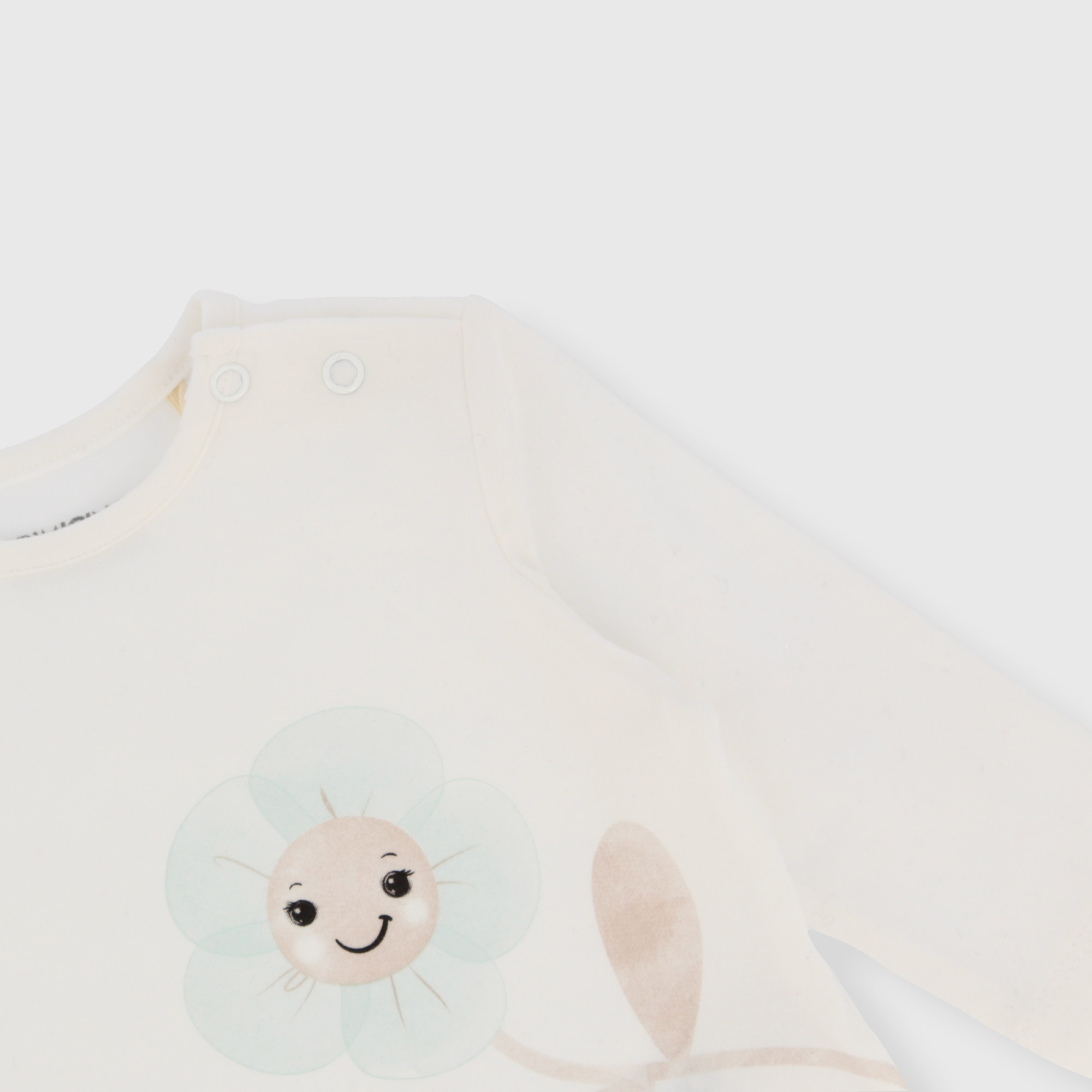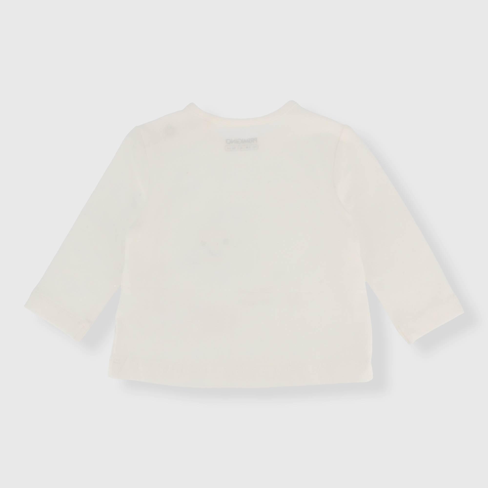 Jersey-T-Shirt, Rundhalsausschnitt, mit langen Ärmeln. Druckknopfverschluss an der Schulter. Druck auf der Vorderseite.