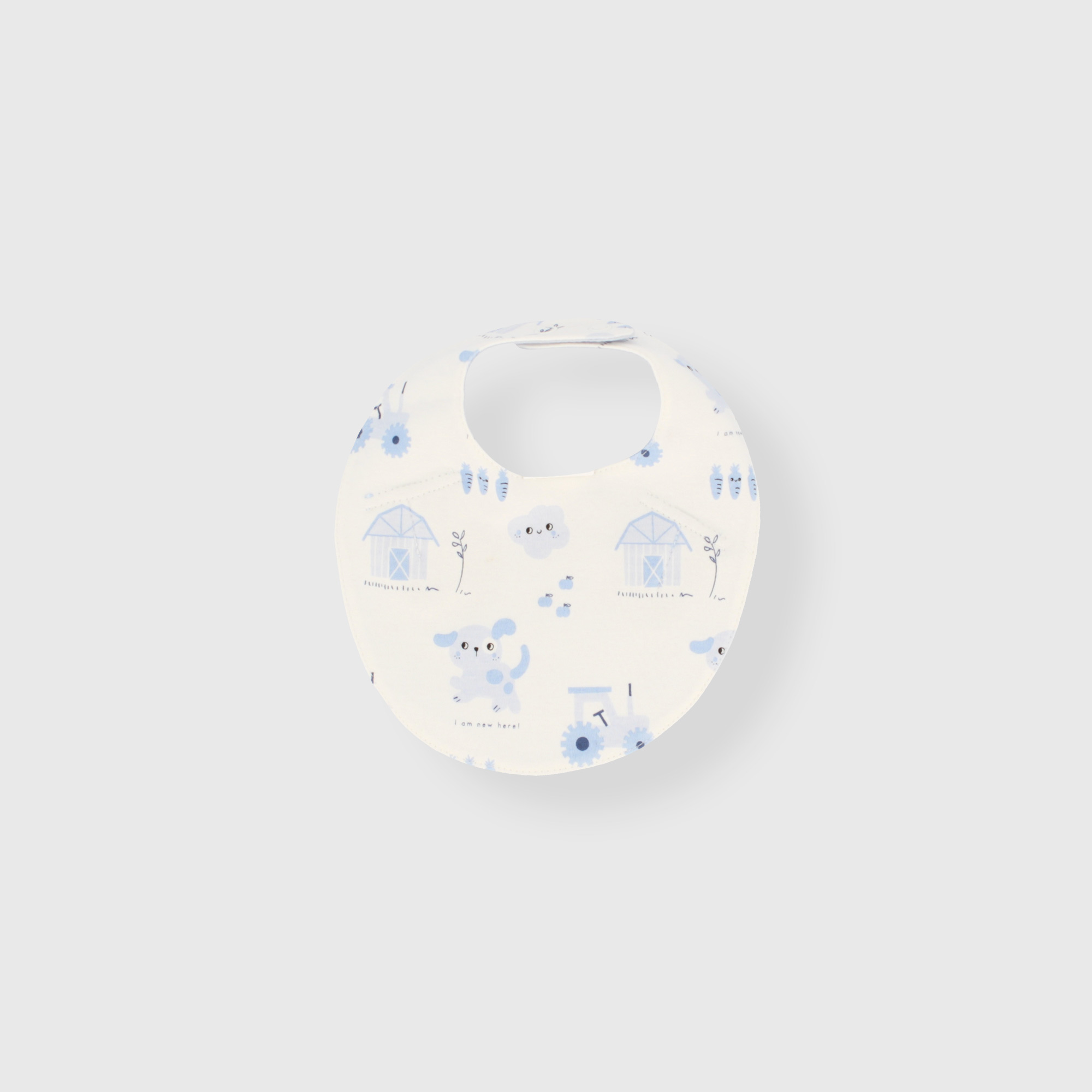 Baumwolllätzchen mit Druckknopfverschluss. Welpendruck mit Ohrenapplikation.