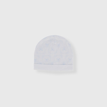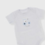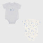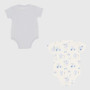 Packung bestehend aus zwei Baumwoll-Bodys mit Rundhalsausschnitt und kurzen Ärmeln. Druckknopfverschluss an der Unterseite. Ein Body mit Allover-Print und ein Body mit Print auf der Vorderseite.