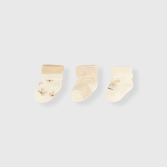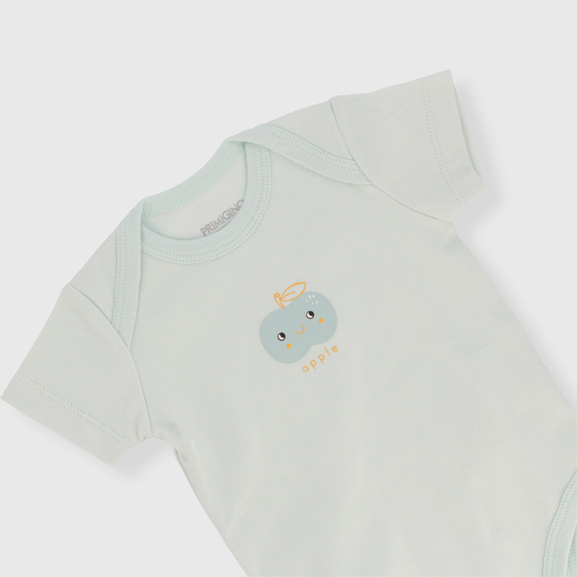 Paket bestehend aus drei warmen Baumwoll-Bodys mit Rundhalsausschnitt, kurzen Ärmeln und Aufdruck auf der Vorderseite. Druckknopfverschluss an der Unterseite.