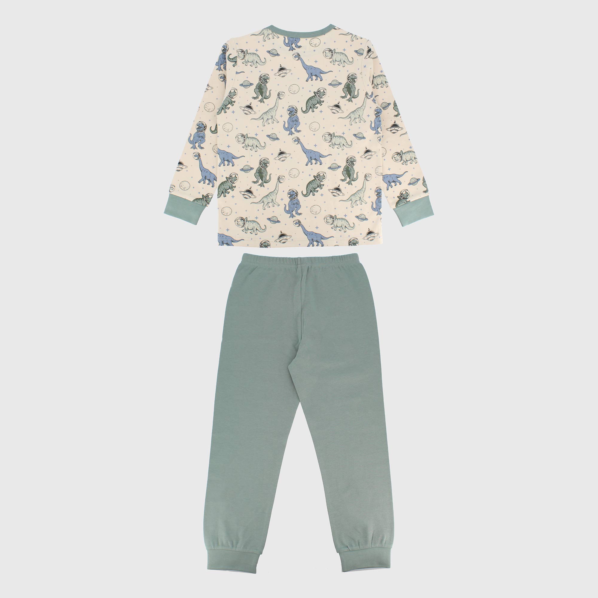 Warmes Pyjama-Set aus Baumwolle. Pullover mit Rundhalsausschnitt, langen Ärmeln und kontrastierenden Profilen. Allover-Dinosaurier-Print. Hose mit elastischem Bund.