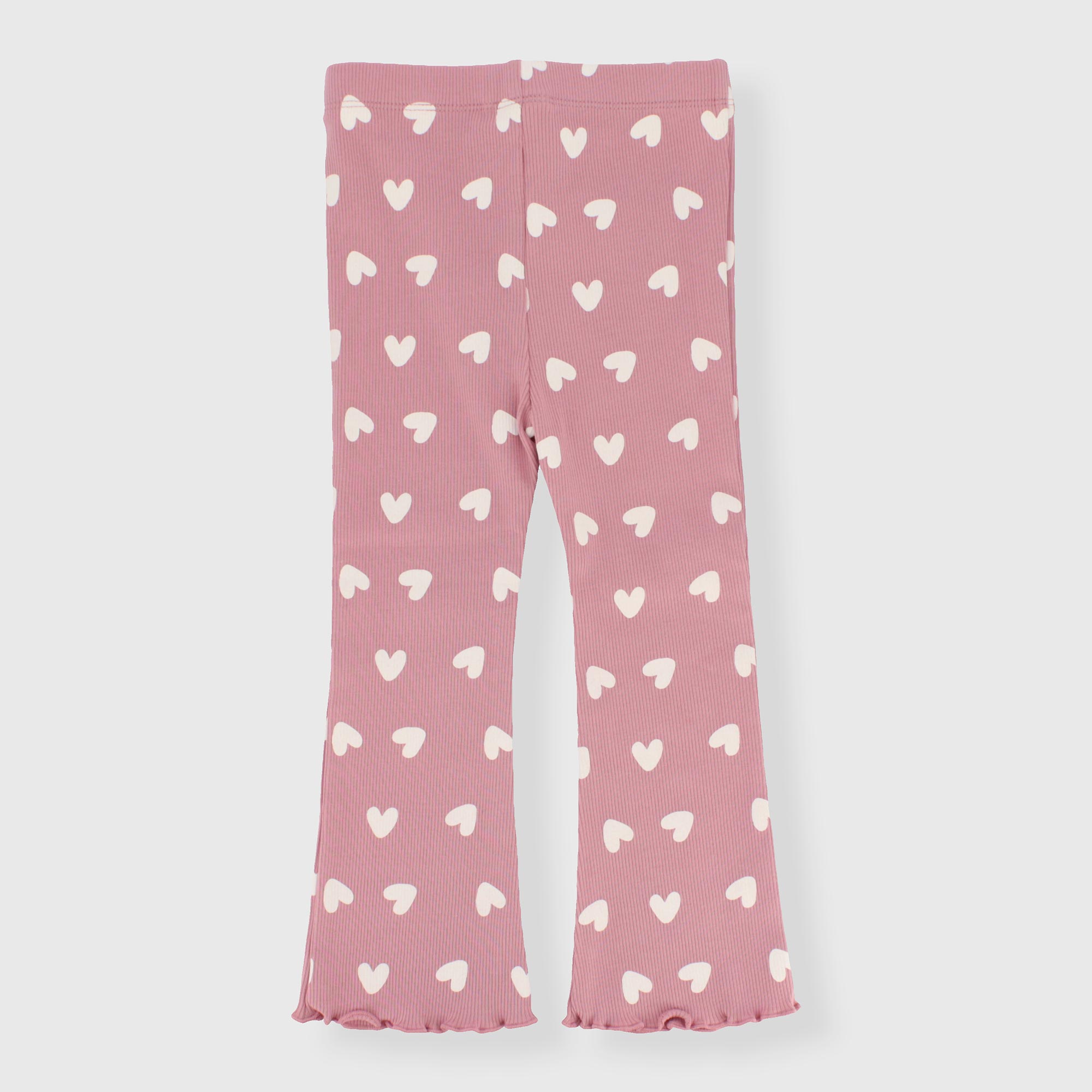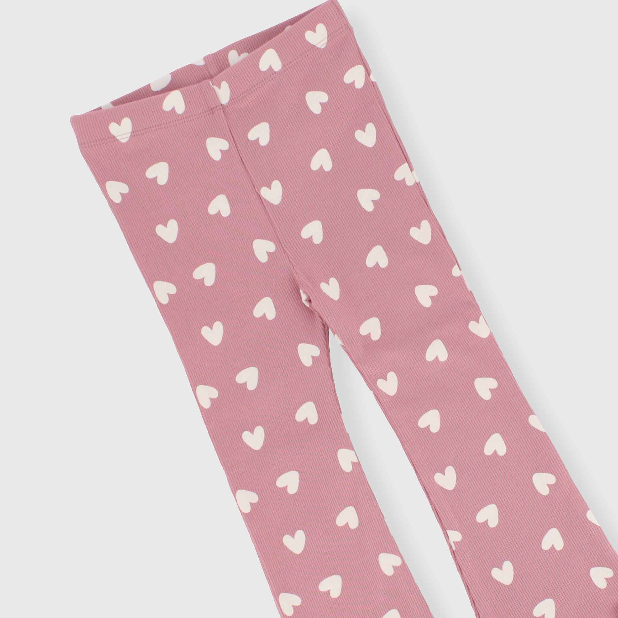 Gerippte, glockenförmige Leggings mit elastischem Bund und durchgehendem Herzdruck.