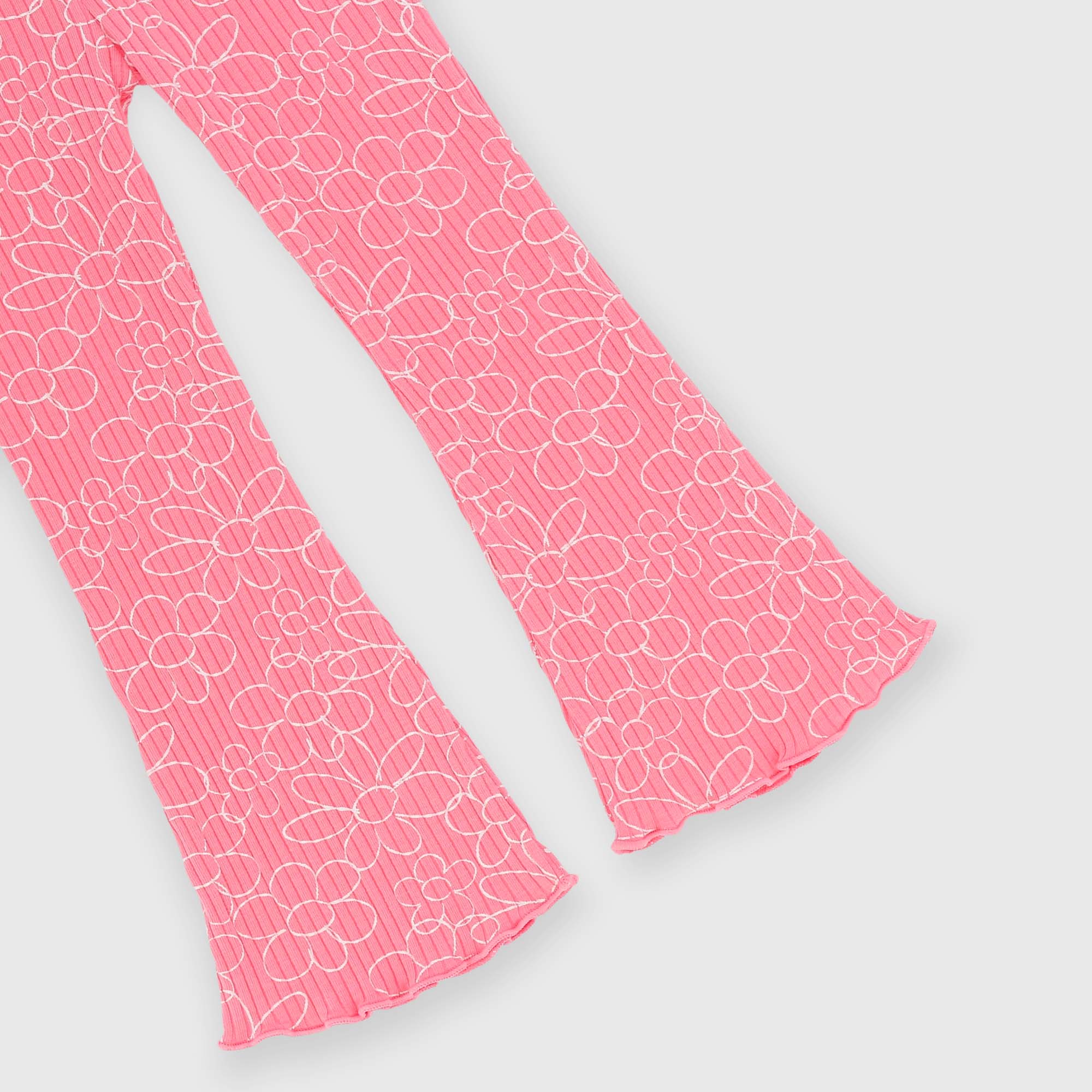 Gerippte Glockenleggings mit elastischem Bund. Allover-Print mit Blumen. Puppenstich-Finishes.
